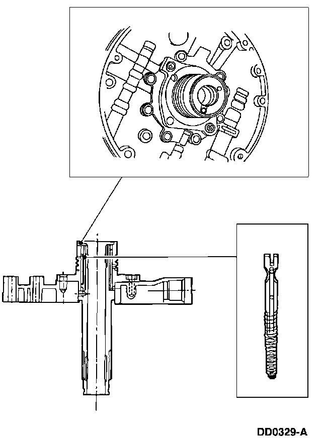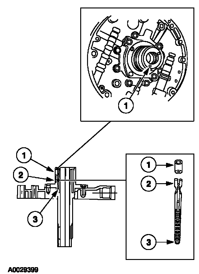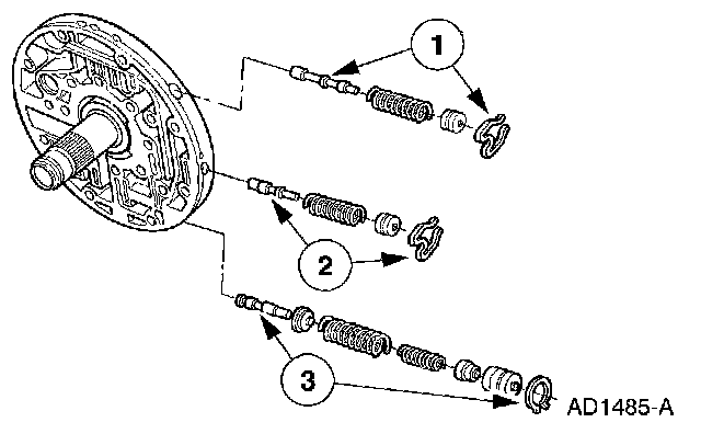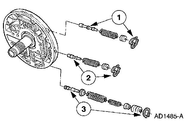 2 Install the converter regulator valve assembly. Then apply pressure to the end plug and install the retainer, making sure it is correctly seated.