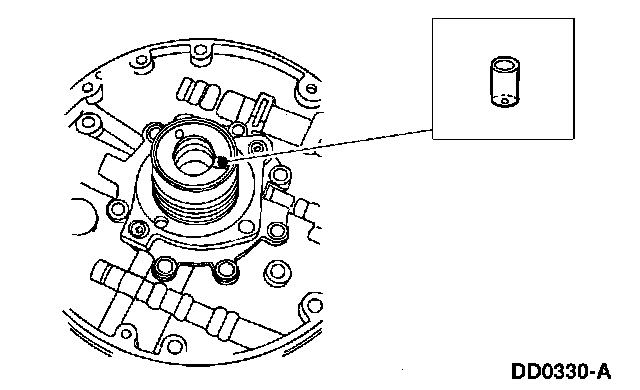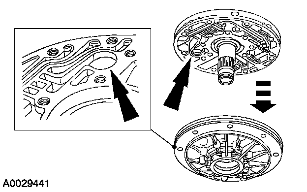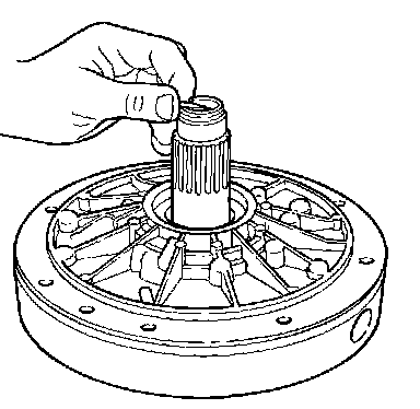 9. Inspect the converter hub bushing. If scored or excessively worn, replace the entire pump. Note the orientation of the lube groove.