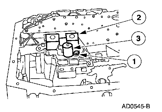1. Remove the Torque Converter Clutch (TCC) solenoid and the shift solenoid.