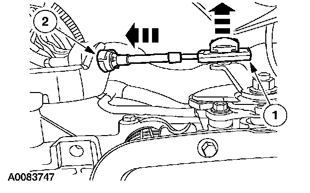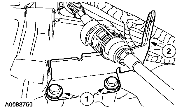 2. NOTE: To prevent cable damage, do not apply force to the transmission shift cable assembly between the steering column transmission selector lever arm and the steering column bracket.