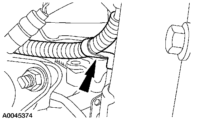 8. Remove the cable from the cable route assist clip located at the transmission bell housing.