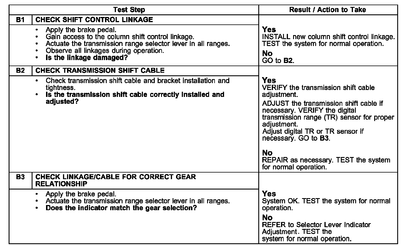 Test B: The Shift Control Is Out of Correct Gear Relationship