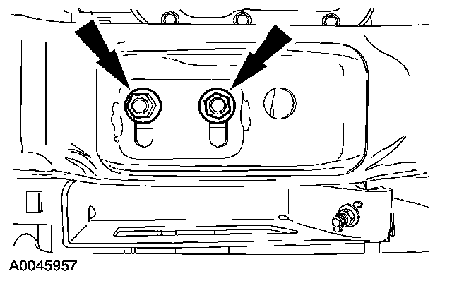 4. Slightly raise the rear of the transmission and remove the bolts. Remove the rear transmission mount.