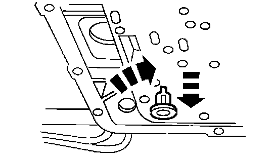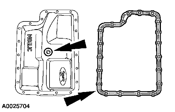 Position the gasket onto the clean fluid pan. Make sure the magnet is positioned over the dimple in the fluid pan.