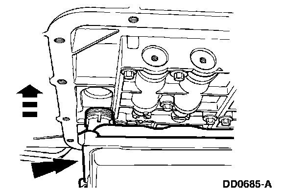 NOTE: Apply a light coat of petroleum jelly to hold the gasket to the fluid pan.