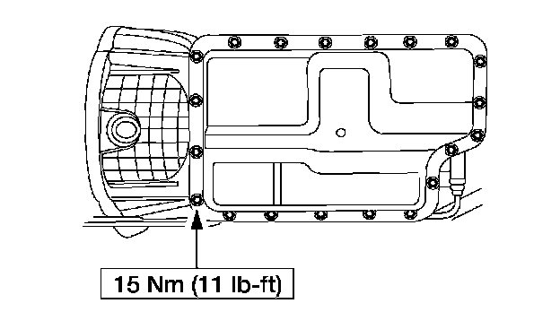 14. Install the pan with gasket. Alternately tighten the bolts.