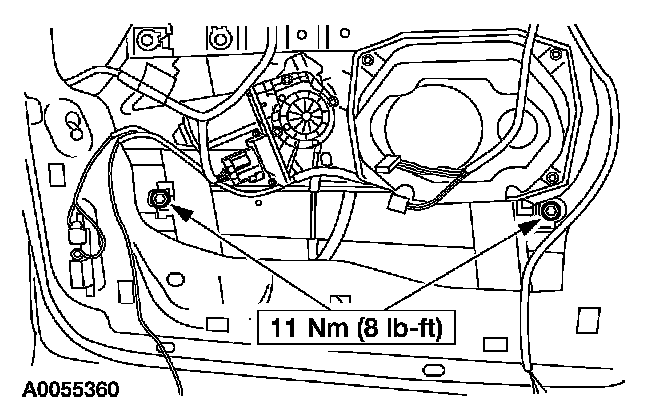 4. Lower the window glass to access the two window glass to regulator bolts.