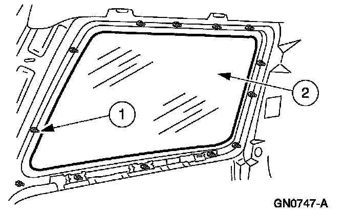 7. CAUTION: Have an assistant hold the rear quarter window glass.
