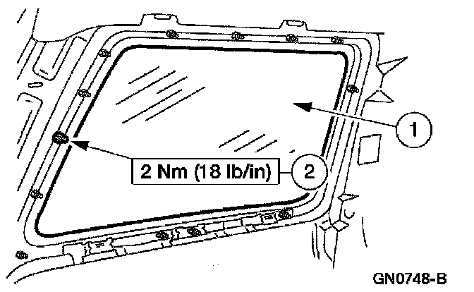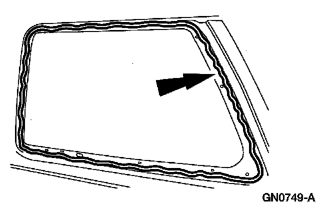 1. Apply 8 mm (0.32 in) Foam Butyl of equivalent meeting Ford specification WSB-M4GB45-A to the rear quarter window glass frame.