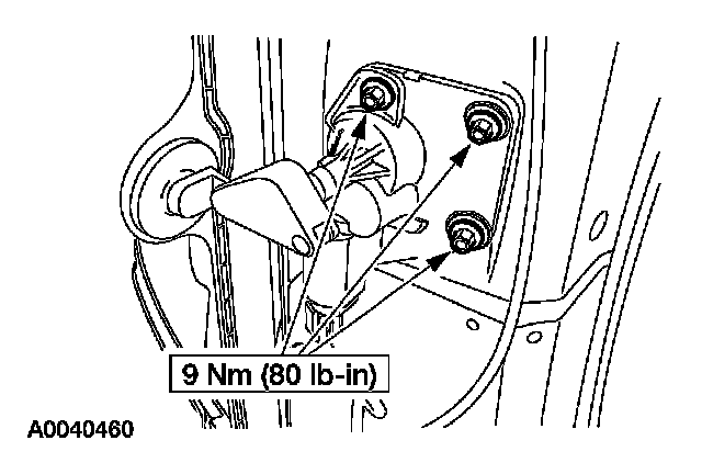 6. Install the bolts and rear quarter window regulator motor.