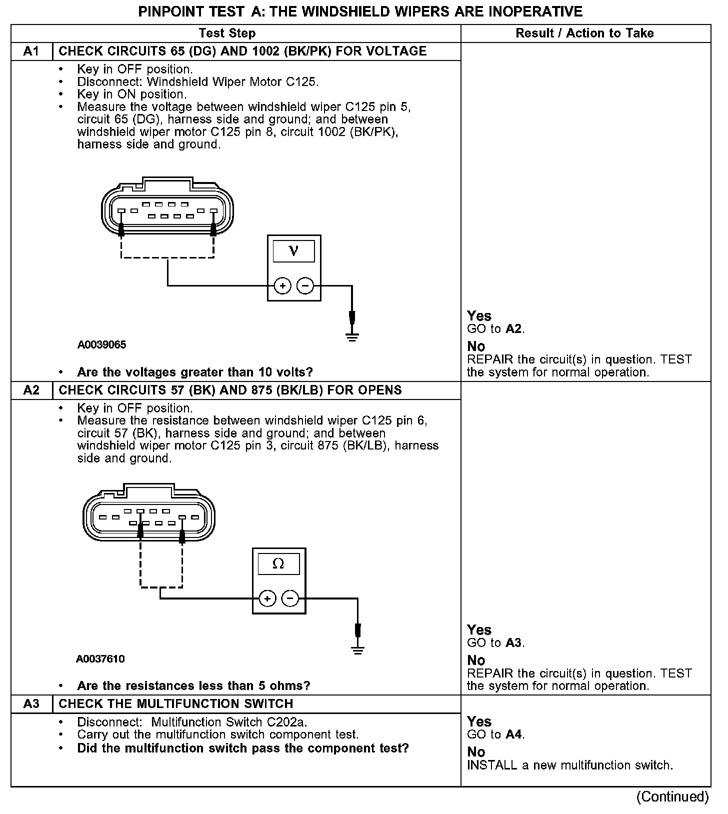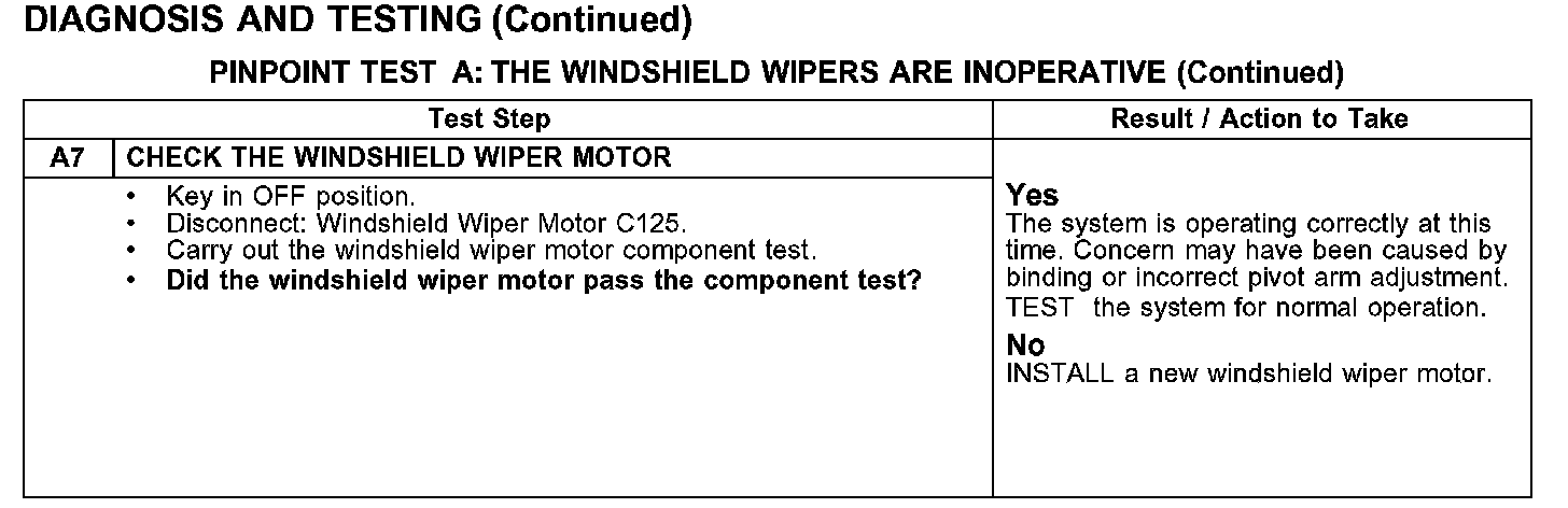 PINPOINT TEST A: THE WINDSHIELD WIPERS ARE INOPERATIVE