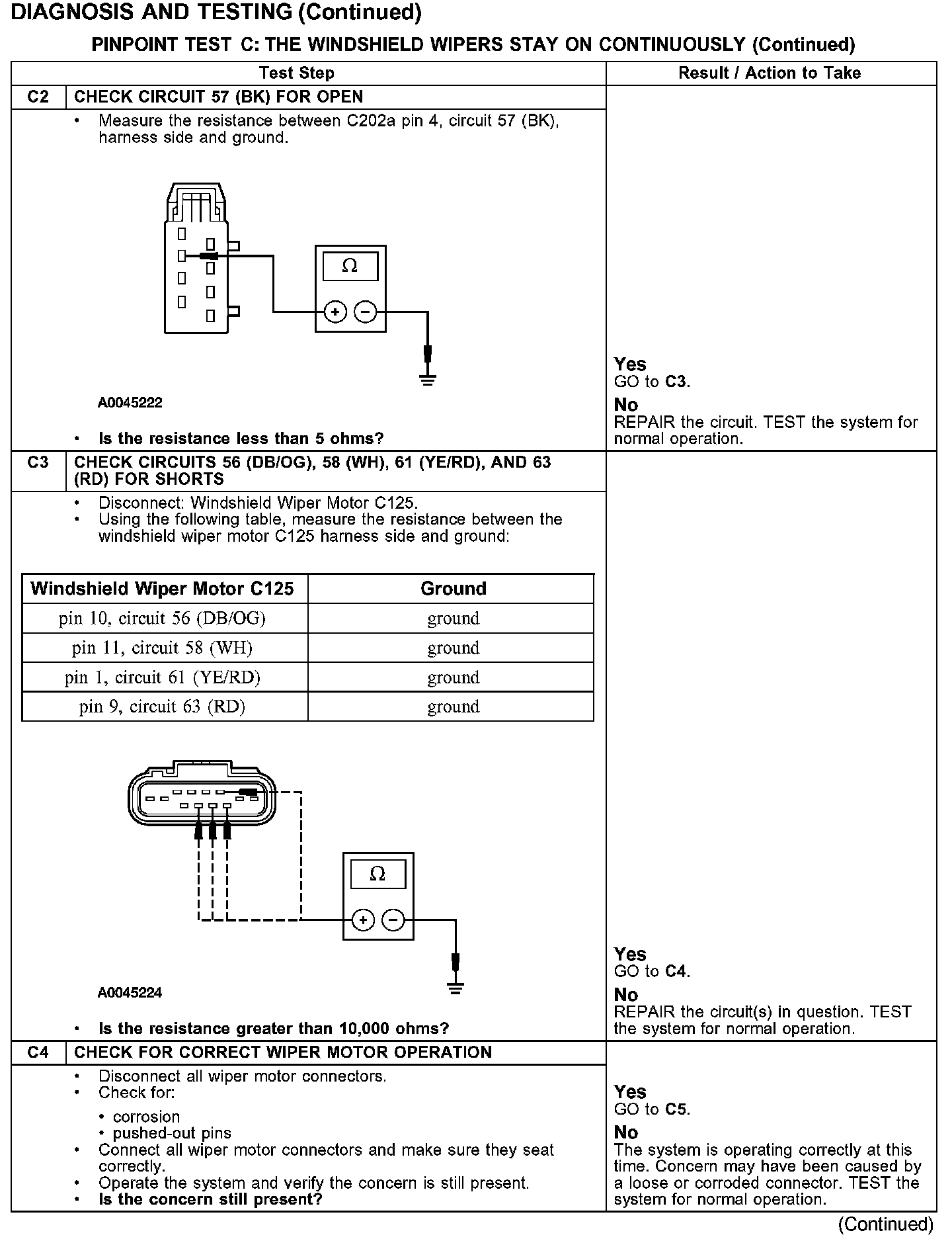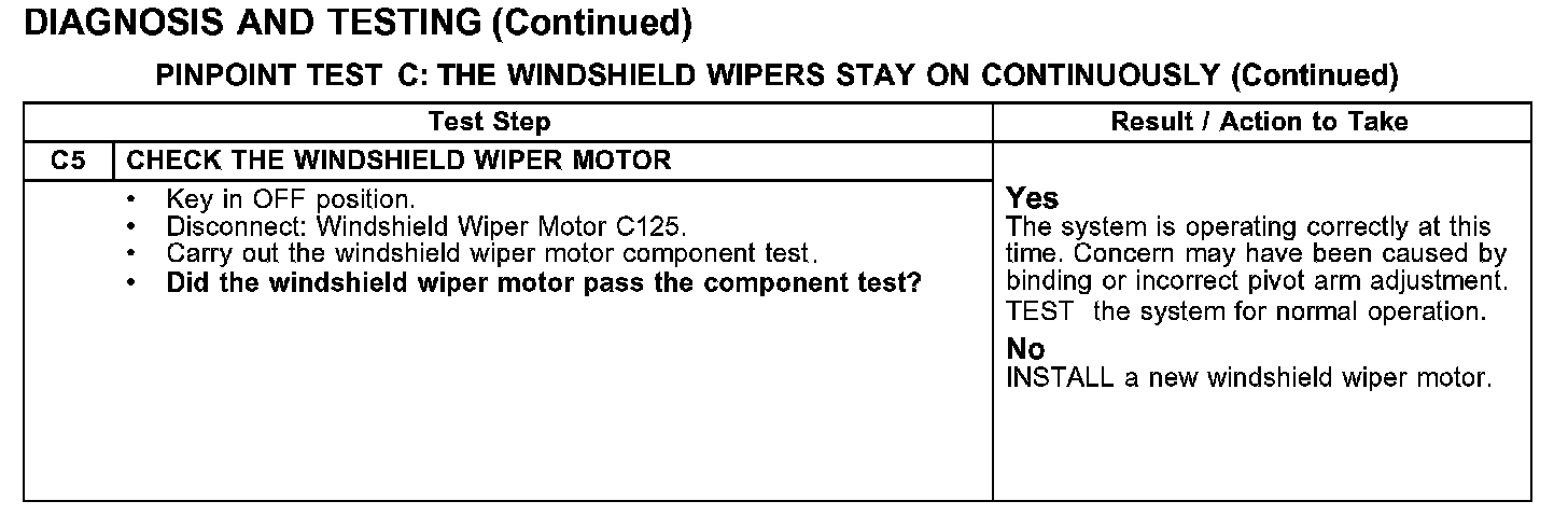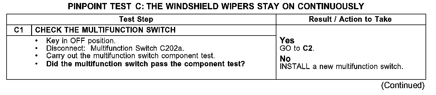 PINPOINT TEST C: THE WINDSHIELD WIPERS STAY ON CONTINUOUSLY
