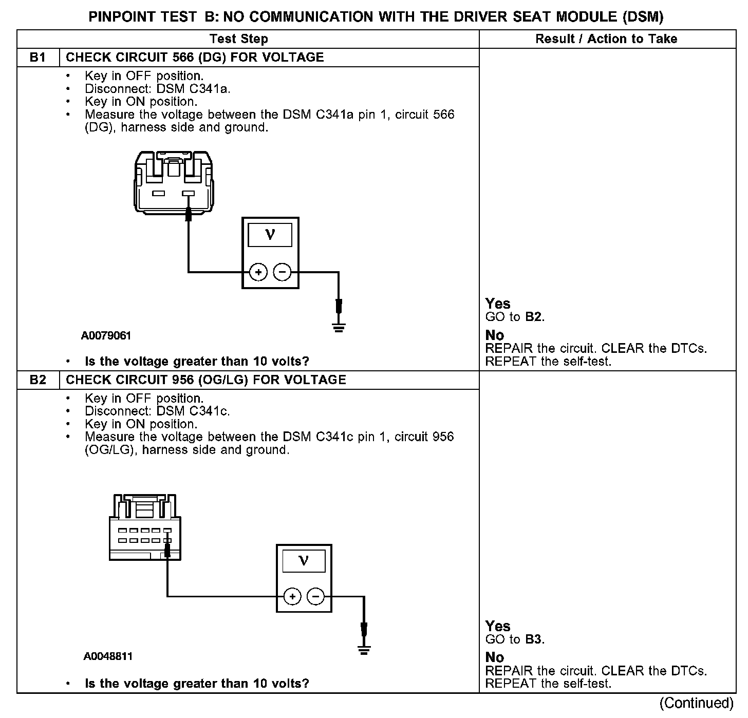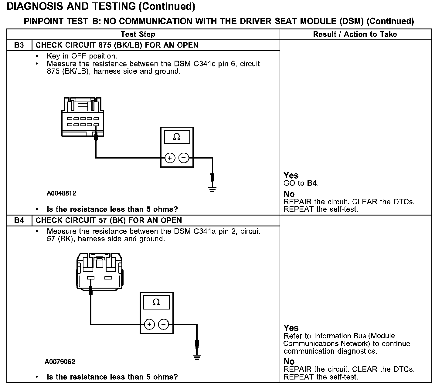 PINPOINT TEST B: NO COMMUNICATION WITH THE DRIVER SEAT MODULE (DSM)