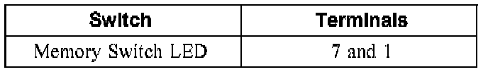 To check the memory set switch LED, connect the positive meter lead to terminal 7 and the negative lead to terminal 1. The meter should indicate greater than 0.3 volts. Reversing the leads, the meter should read OL.