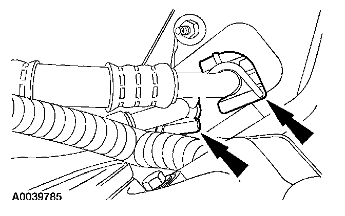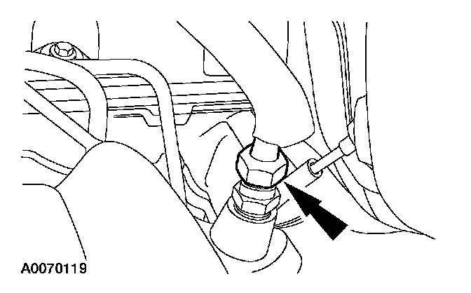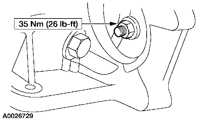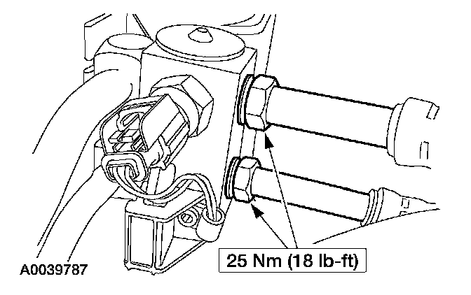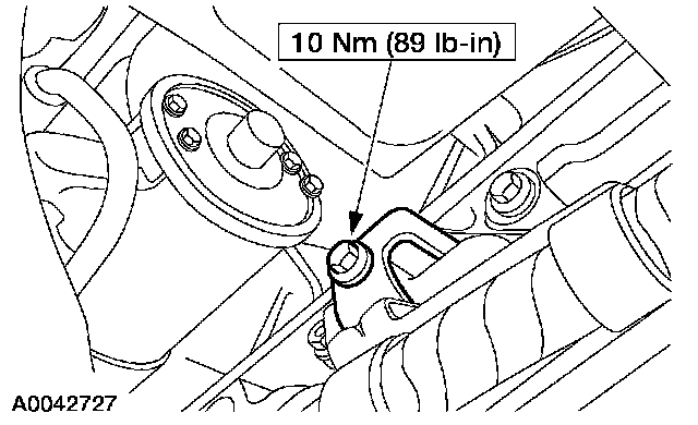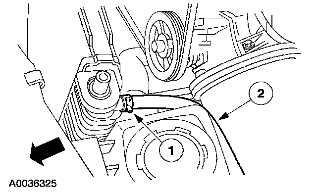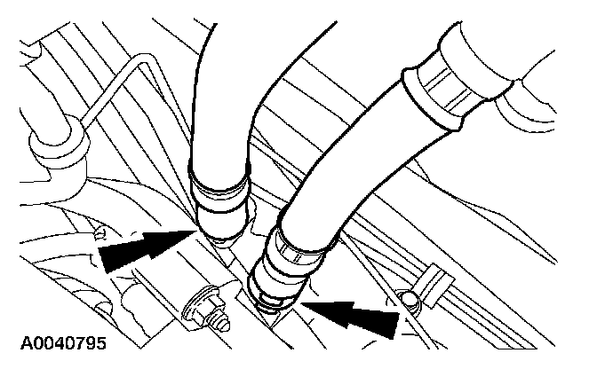 36. Position the transmission cooler tube and the power steering hose brackets and install the nuts.