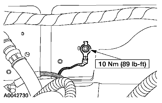 23. NOTE: On 4x4 vehicles, connect the transfer case vent hose to the bracket after installing the upper transmission-to-engine bolts.
