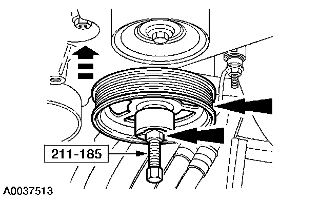 ^ Rotate the crankshaft, using the crankshaft pulley bolt.