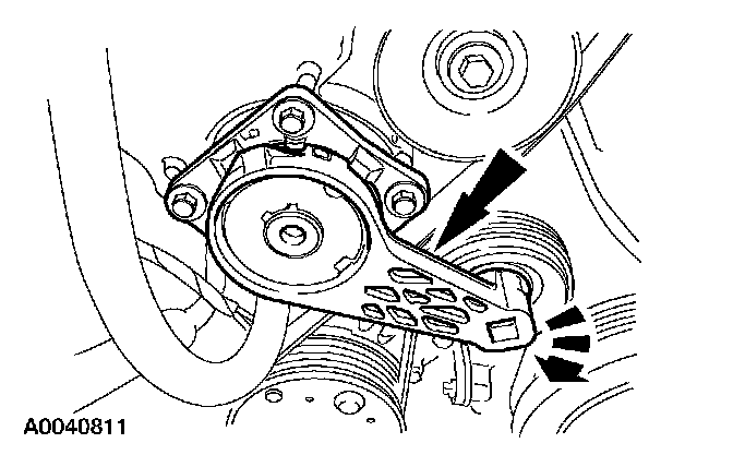 Rotate the belt tensioner counterclockwise and install the drive belt.
