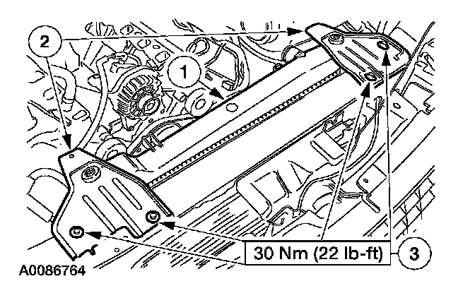 44. Install the Powertrain Control Module (PCM) mounting bracket.
