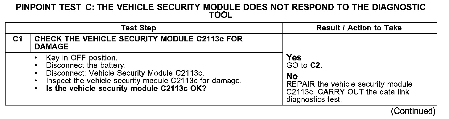 PINPOINT TEST C: THE VEHICLE SECURITY MODULE DOES NOT RESPOND TO THE DIAGNOSTIC TOOL