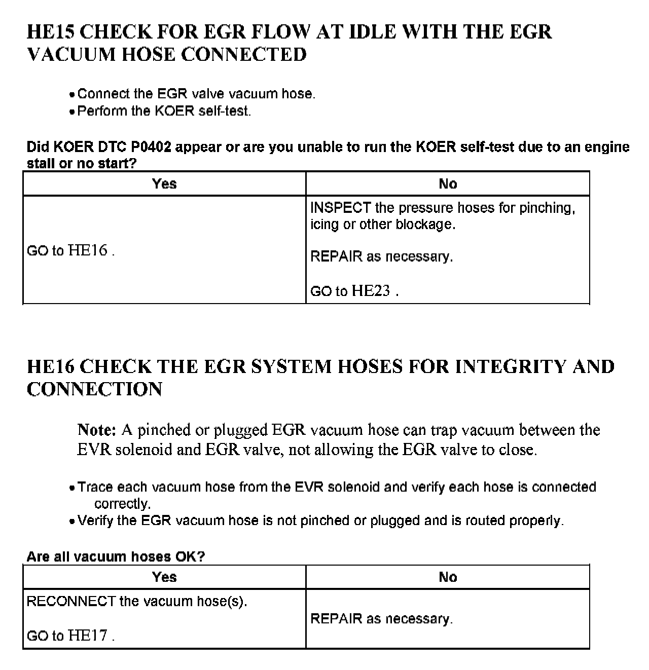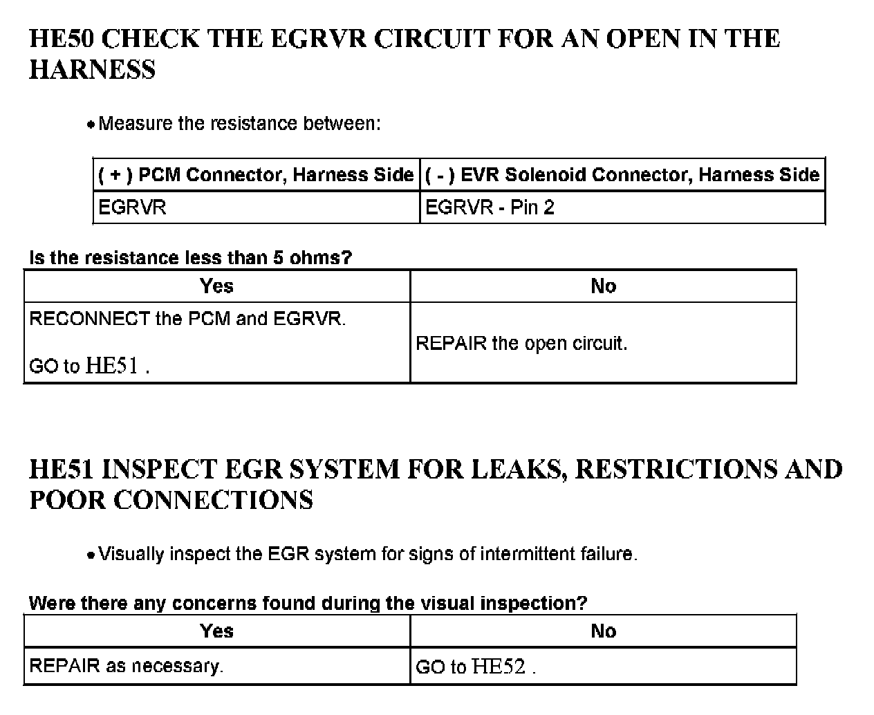 Tests HE: Exhaust Gas Recirculation (EGR) Systems