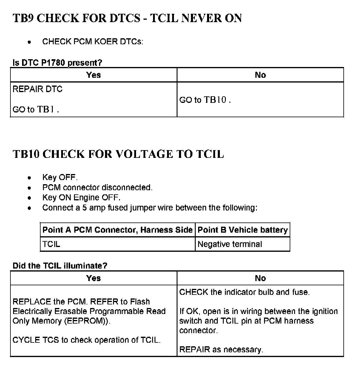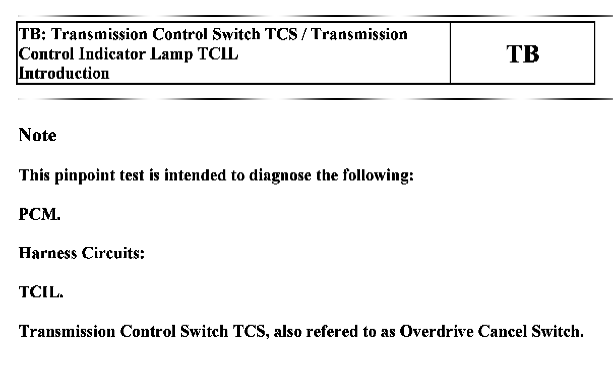 Tests TB: Trans Control Switch/Trans Control Indicator Lamp