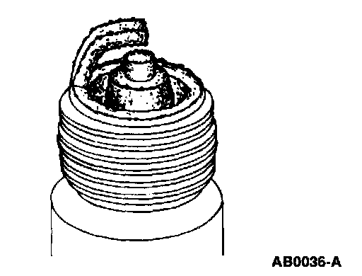 ^ Check for wet, black deposits on the insulator shell bore electrodes, caused by excessive oil entering the combustion chamber through worn rings and pistons, excessive valve-to-guide clearance or worn or loose bearings.