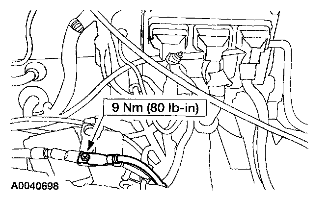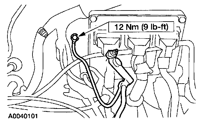 2. Remove the negative battery cable ground bolt at the cowl panel.
