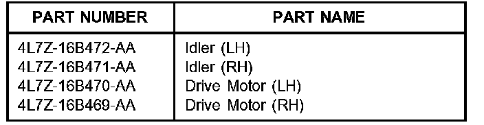 THE RETRACTABLE RUNNING BOARD MUST BE REMOVED FROM THE VEHICLE IN ORDER TO REPLACE THE IDLER OR DRIVE UNIT. FOR ADDITIONAL INFORMATION, REFER TO WORKSHOP MANUAL SECTION 501-08