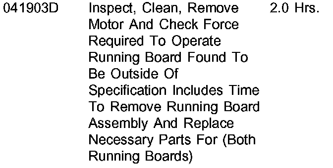IF THE CONDITION IS RESOLVED BY CLEANING ACCUMULATED DEBRIS FROM THE RETRACTABLE RUNNING BOARDS, THIS IS NOT COVERED UNDER WARRANTY.