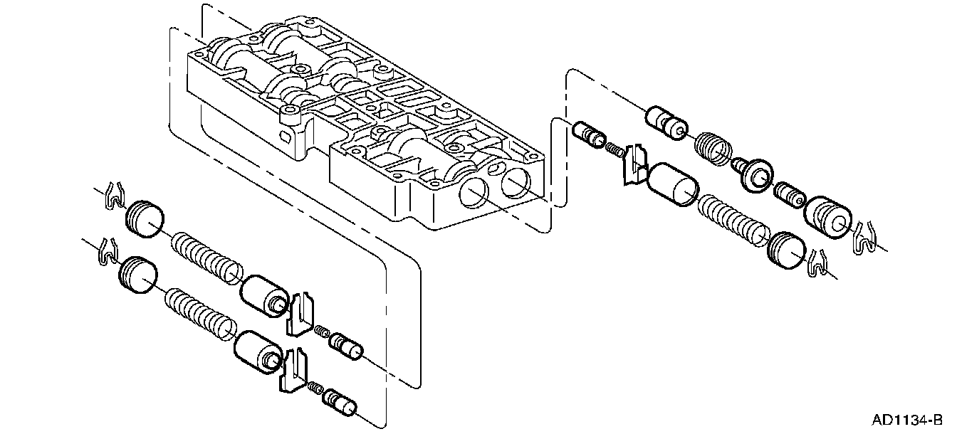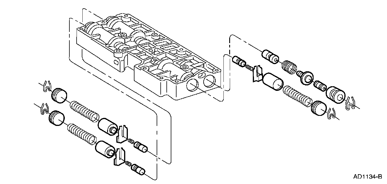1. Remove the control valves and springs. Inspect the valves for nicks and burrs. If the valves are damaged, the accumulator body will need to be replaced.