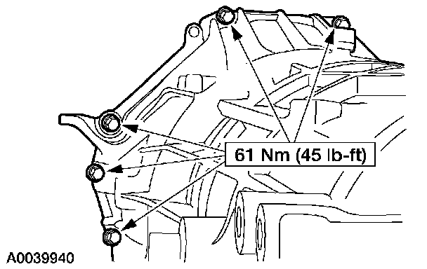 7. Install the bolts to the LH side of the transmission.
