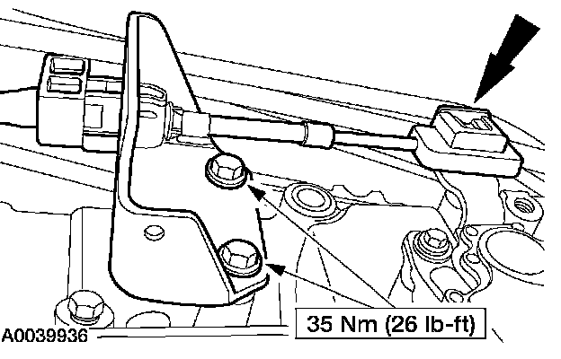 24. Install the fuel line bracket and connect the Output Shaft Speed (OSS) sensor connector.