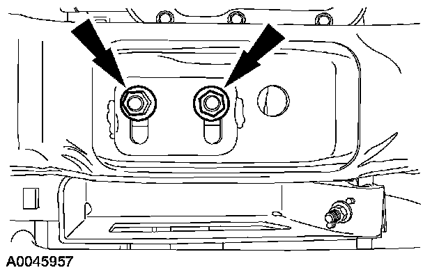 Slightly raise the rear of the transmission and remove the bolts. Remove the rear transmission mount.