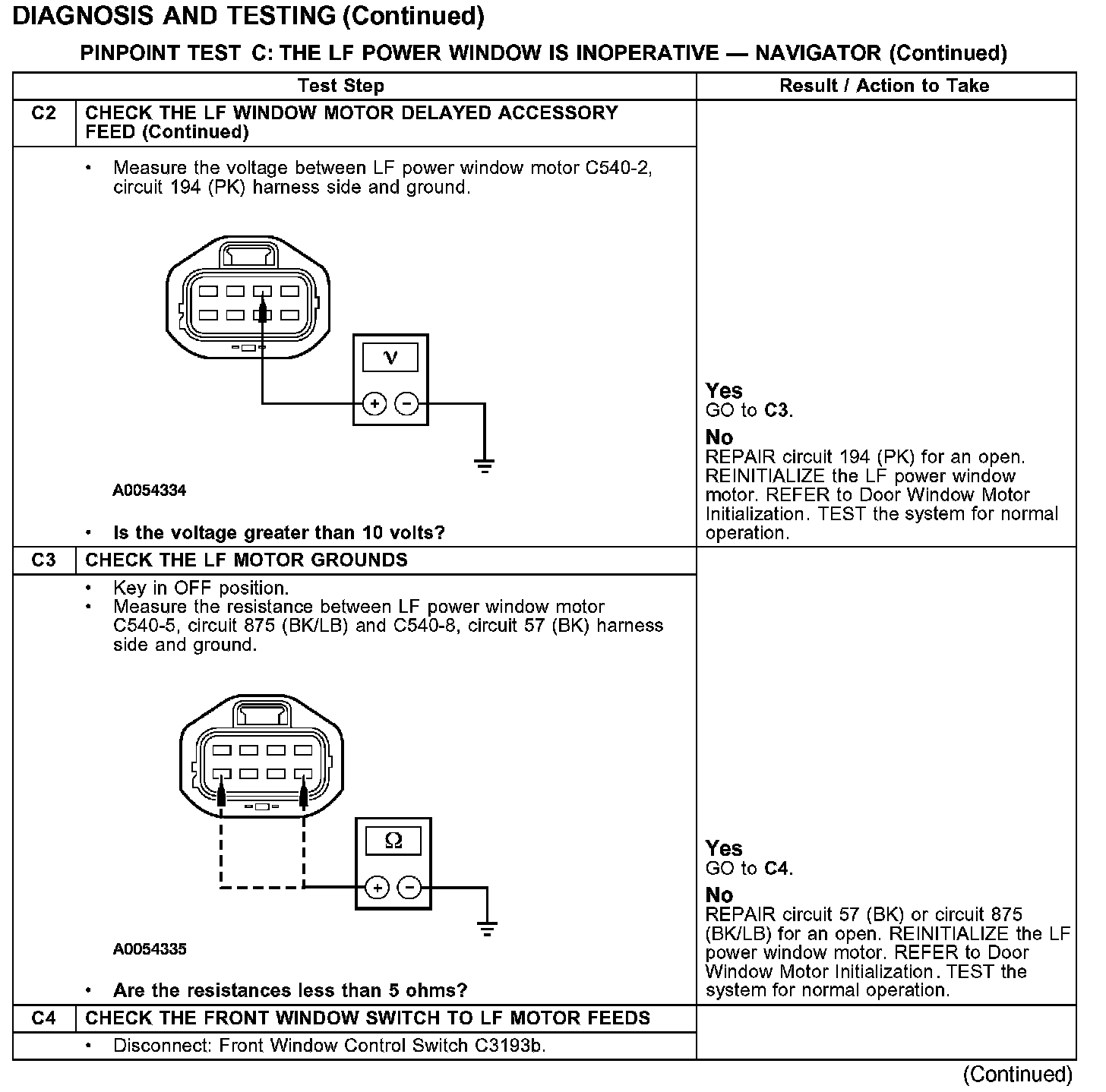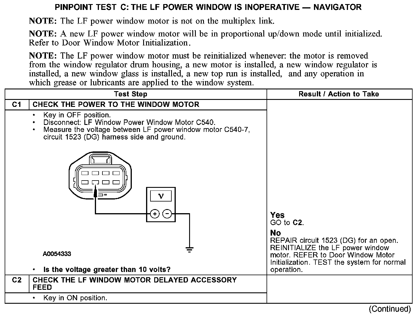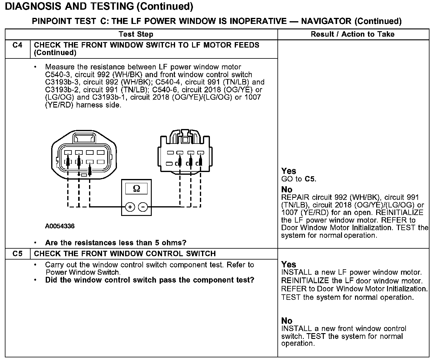 PINPOINT TEST C: THE LF POWER WINDOW IS INOPERATIVE - NAVIGATOR