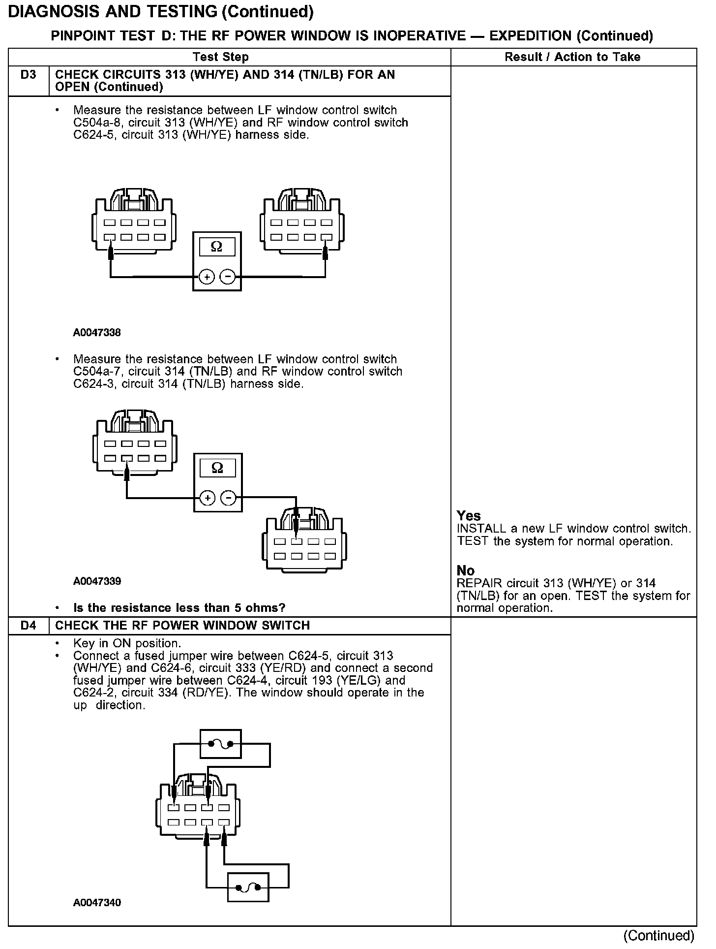 PINPOINT TEST D: THE RF POWER WINDOW IS INOPERATIVE - EXPEDITION