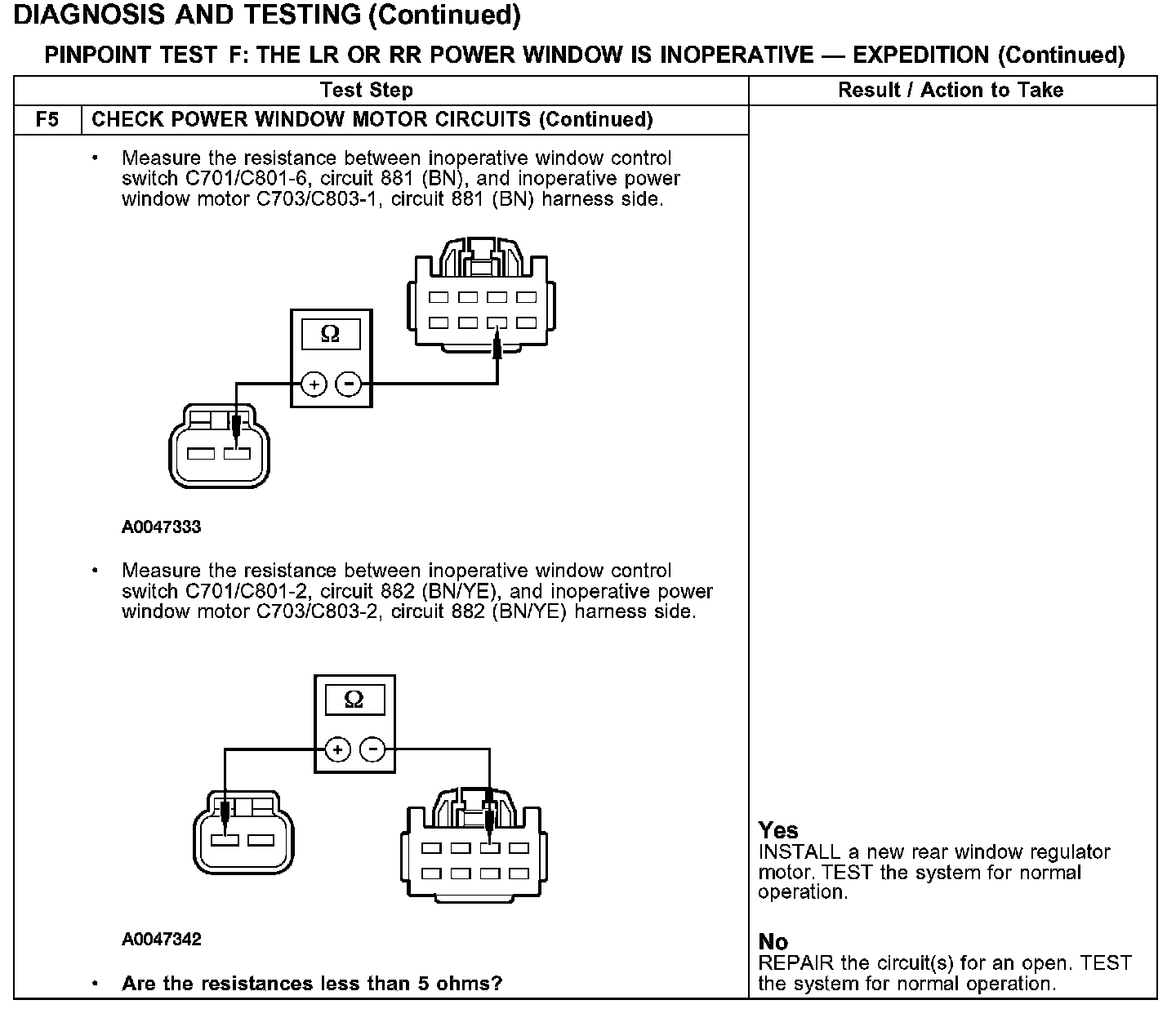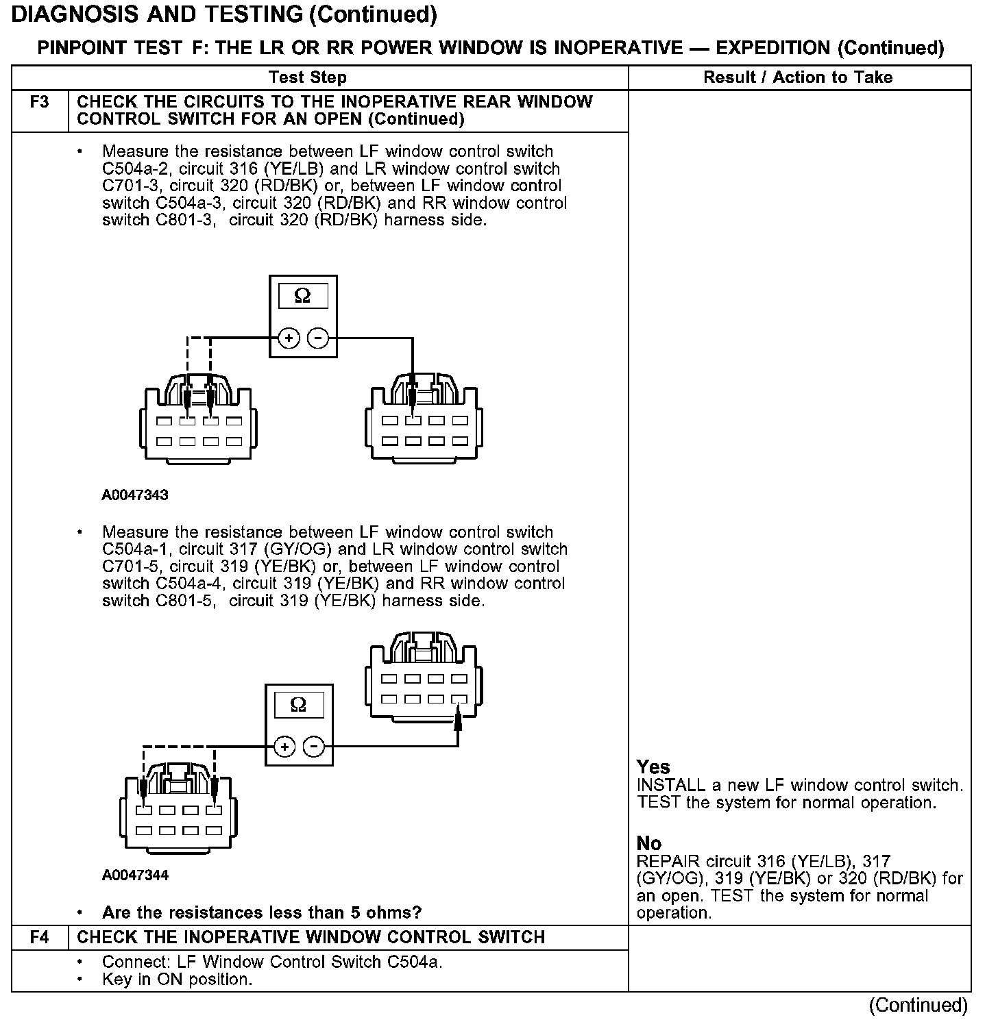 PINPOINT TEST F: THE LR OR RR POWER WINDOW IS INOPERATIVE - EXPEDITION