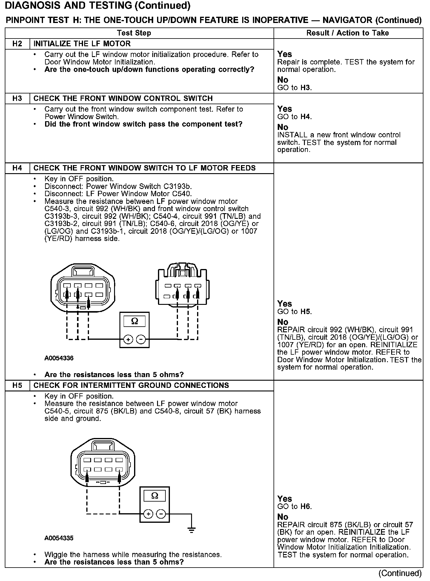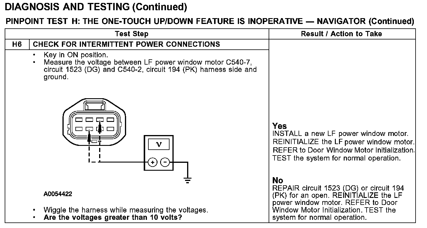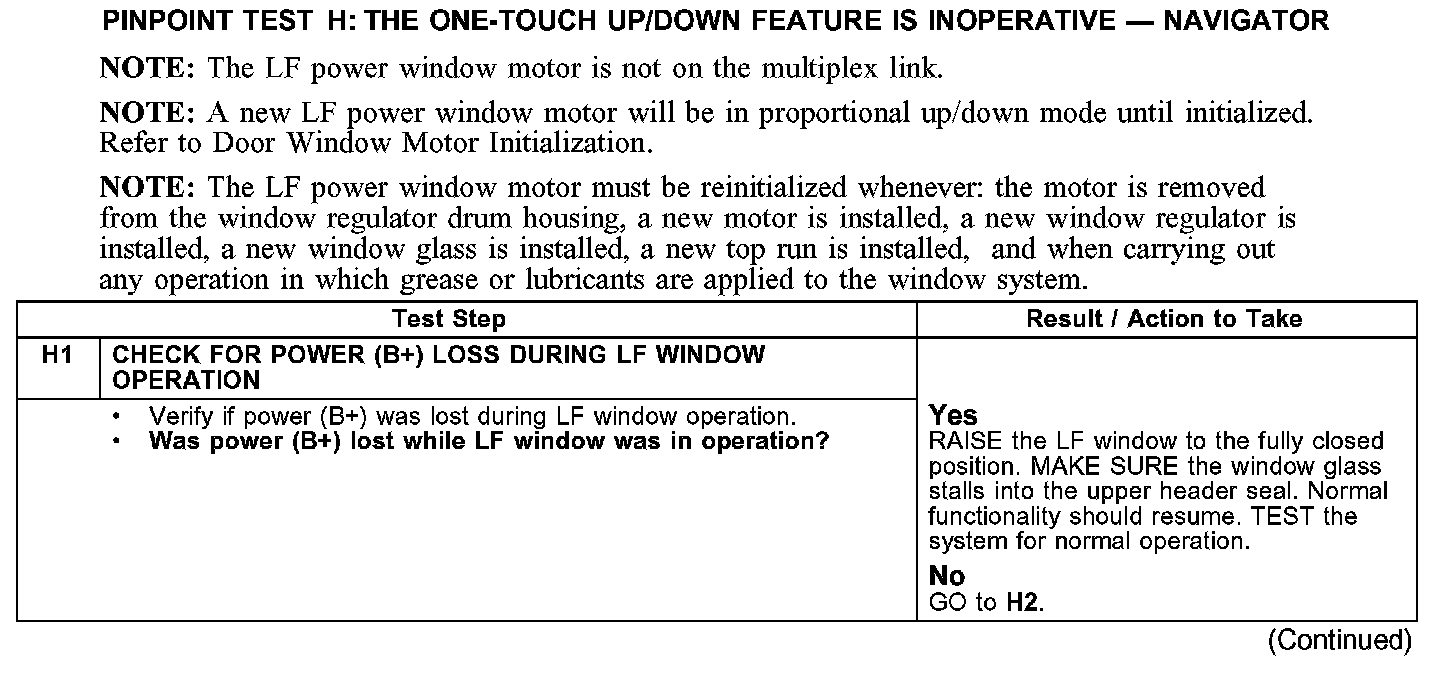 PINPOINT TEST H: THE ONE-TOUCH UP/DOWN FEATURE IS INOPERATIVE - NAVIGATOR