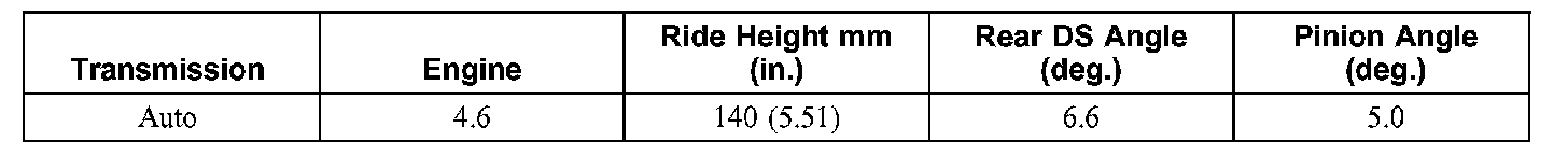 4X2 Rear Driveline Angles @ Curb Specifications