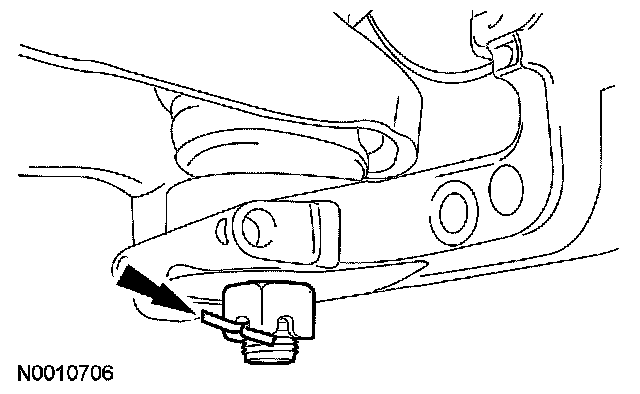 Remove and discard the lower arm-to-frame nut (forward mounting).