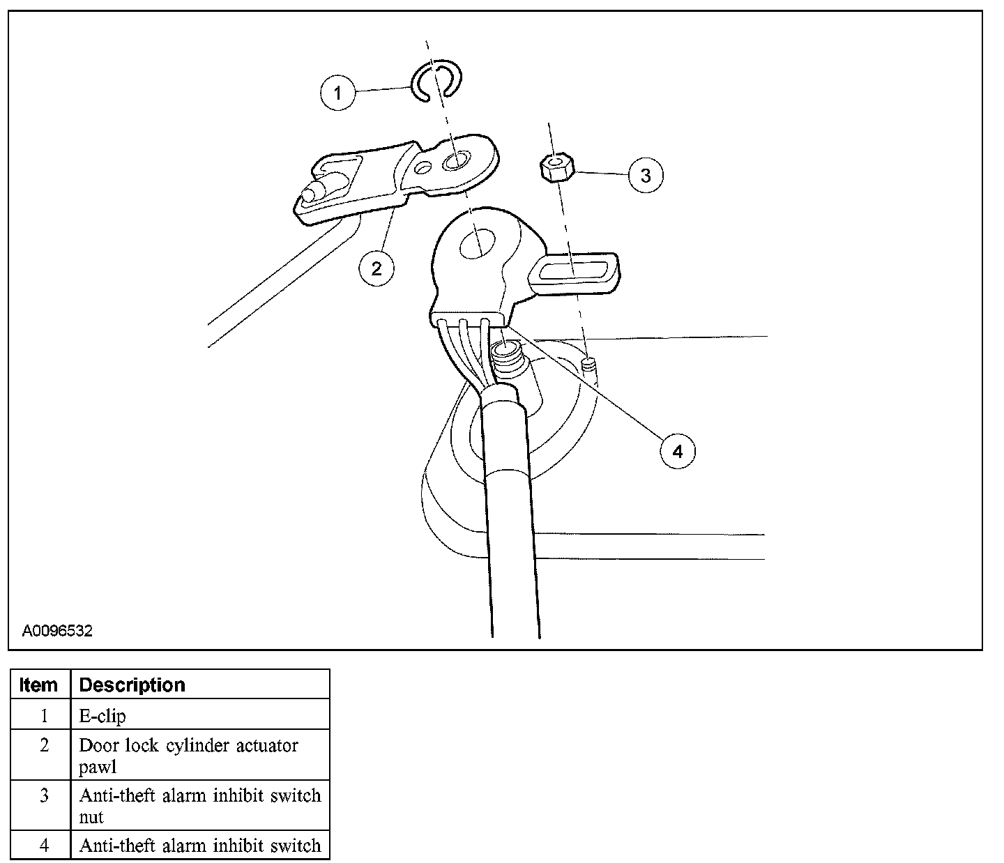 4. Remove the door lock cylinder actuator pawl.