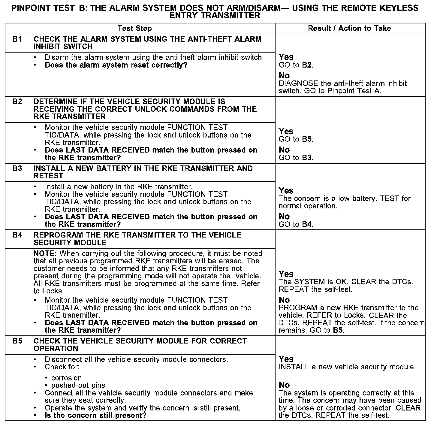 PINPOINT TEST B: THE ALARM SYSTEM DOES NOT ARM/DISARM - USING THE REMOTE KEYLESS ENTRY TRANSMITTERB1-B5: