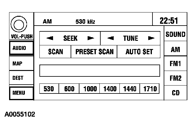 The navigation system module controls the operation and the interface between the user, the vehicle subsystems and the external components. The navigation system module is on the standard corporate protocol (SCP) network and can be diagnosed with a diagnostic tool. Communication through the controller area network (CAN) uses data transmitted and received between the navigation system module and the audio unit to control the video screen display through the video interface circuits.