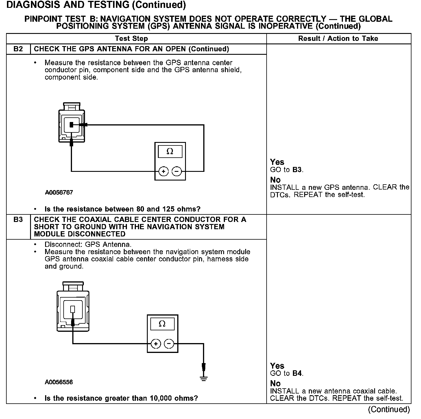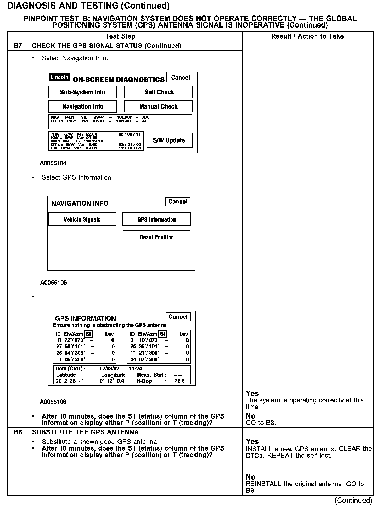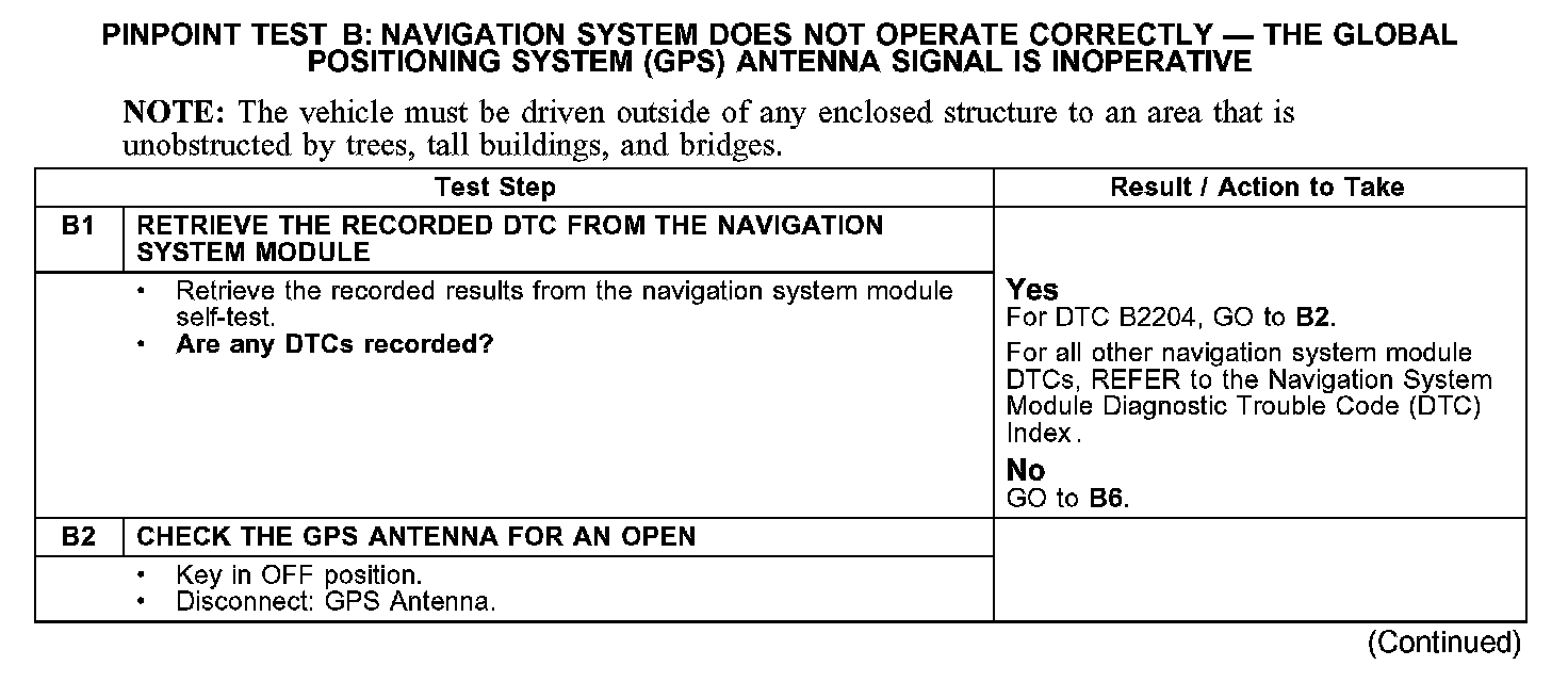 PINPOINT TEST B: NAVIGATION SYSTEM DOES NOT OPERATE CORRECTLY - THE GLOBAL POSITIONING SYSTEM (GPS) ANTENNA SIGNAL IS INOPERATIVEB1-B2: