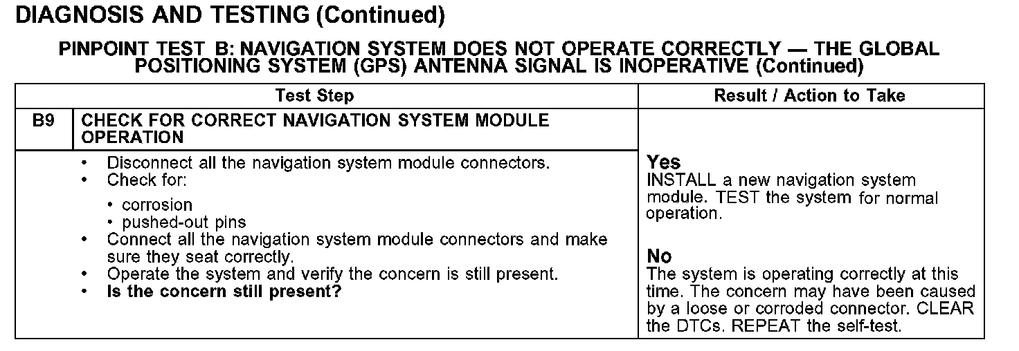 Test B: Navigation System Does Not Operate Correctly - The Global Positioning System (GPS) Antenna Signal Is Inoperative
