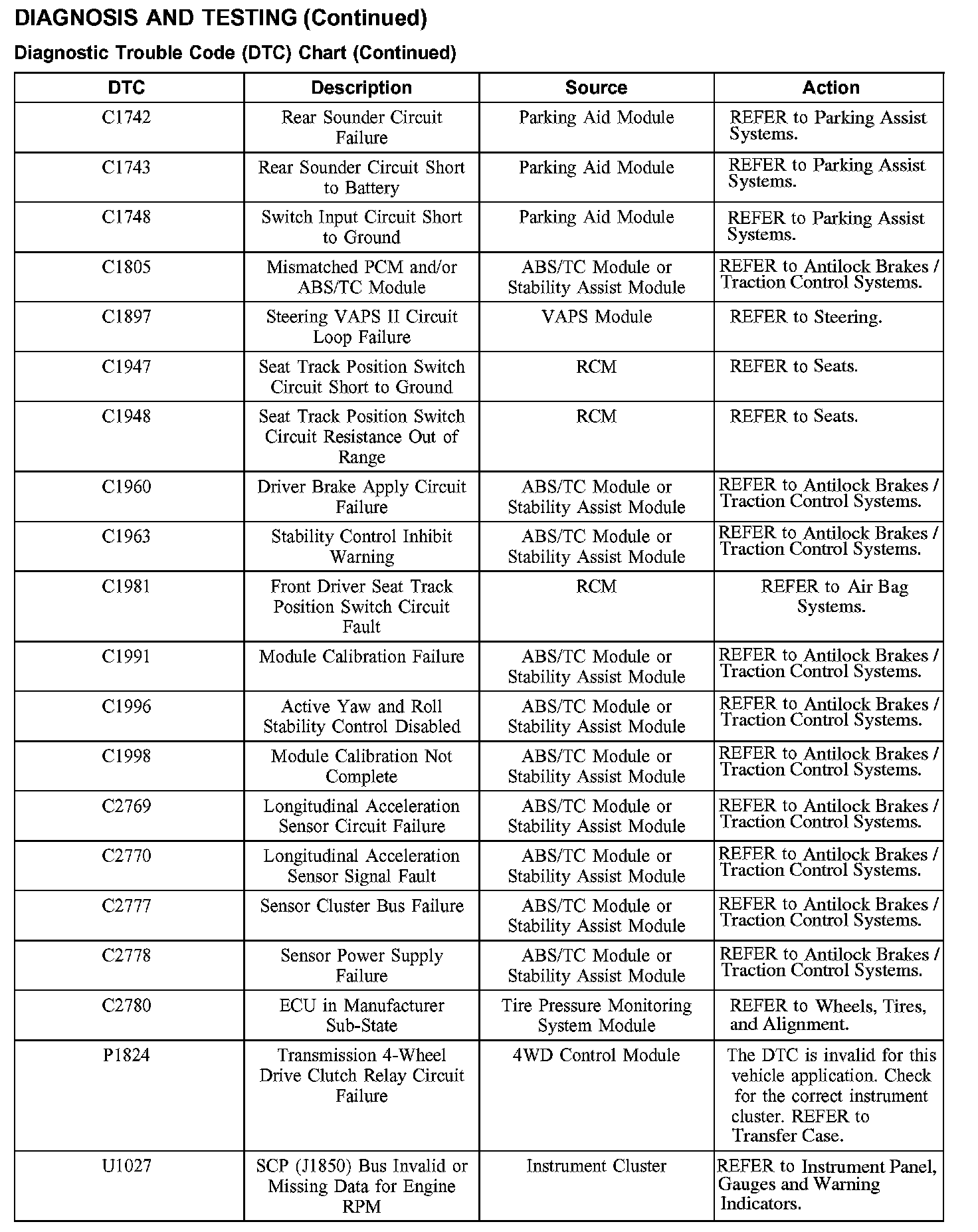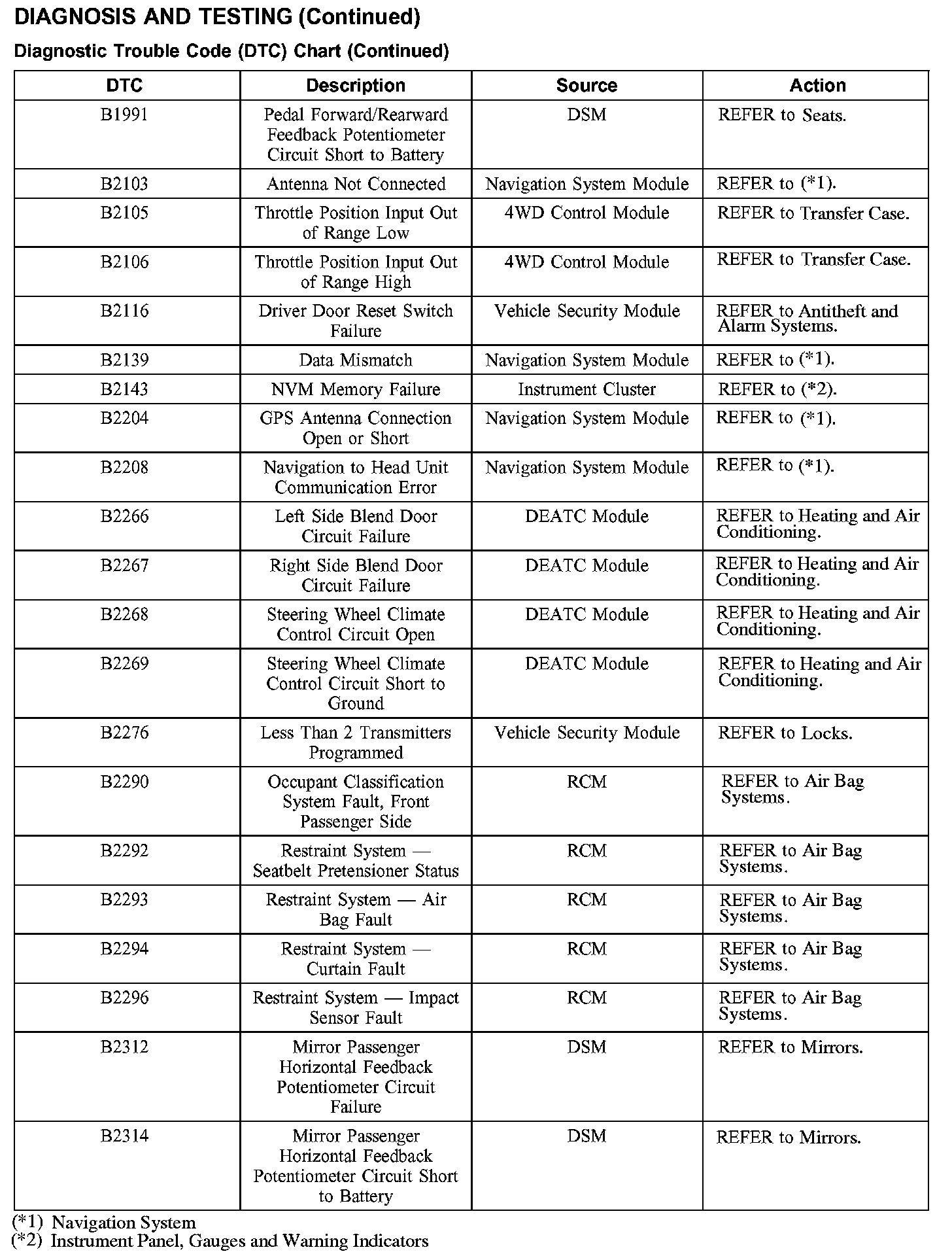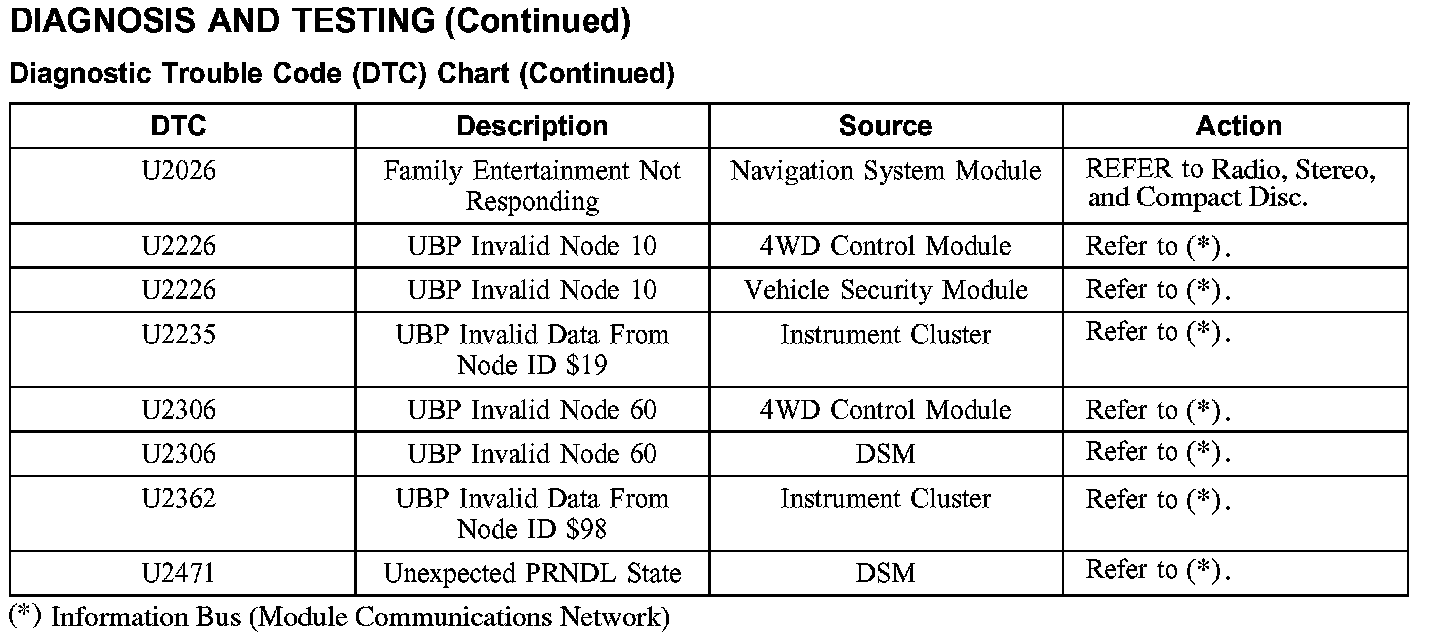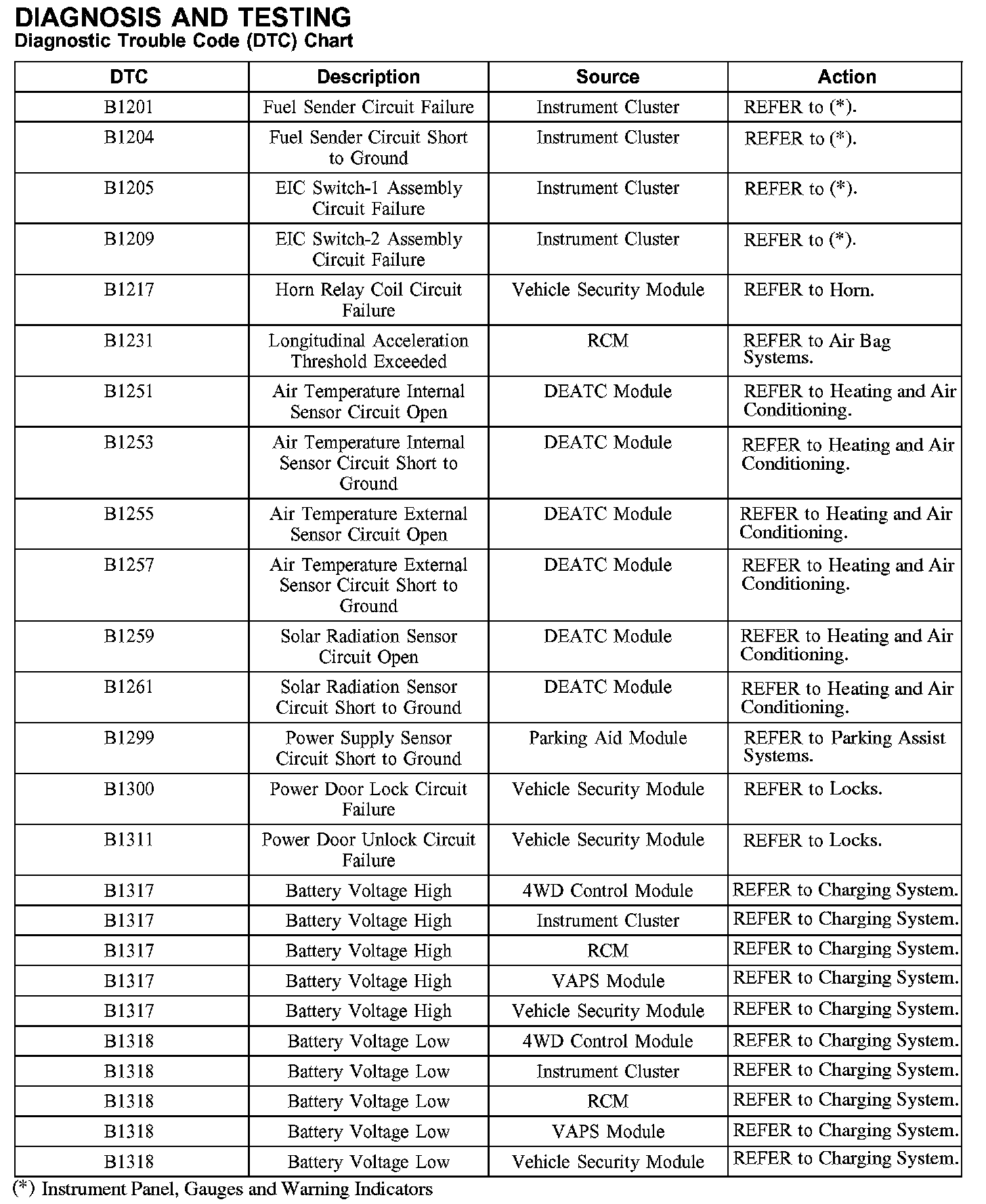 DIAGNOSTIC TROUBLE CODE (DTC) CHART