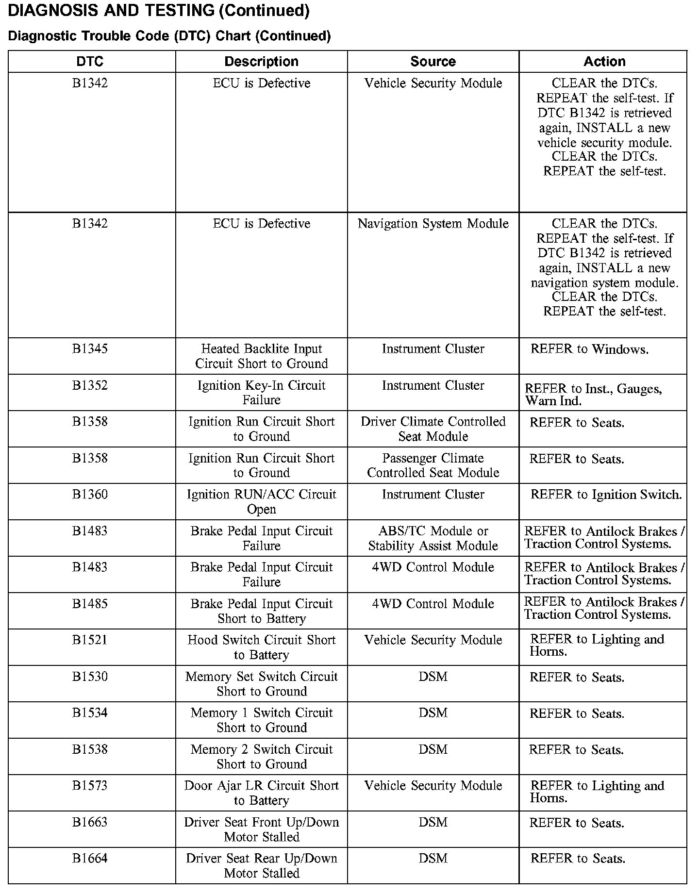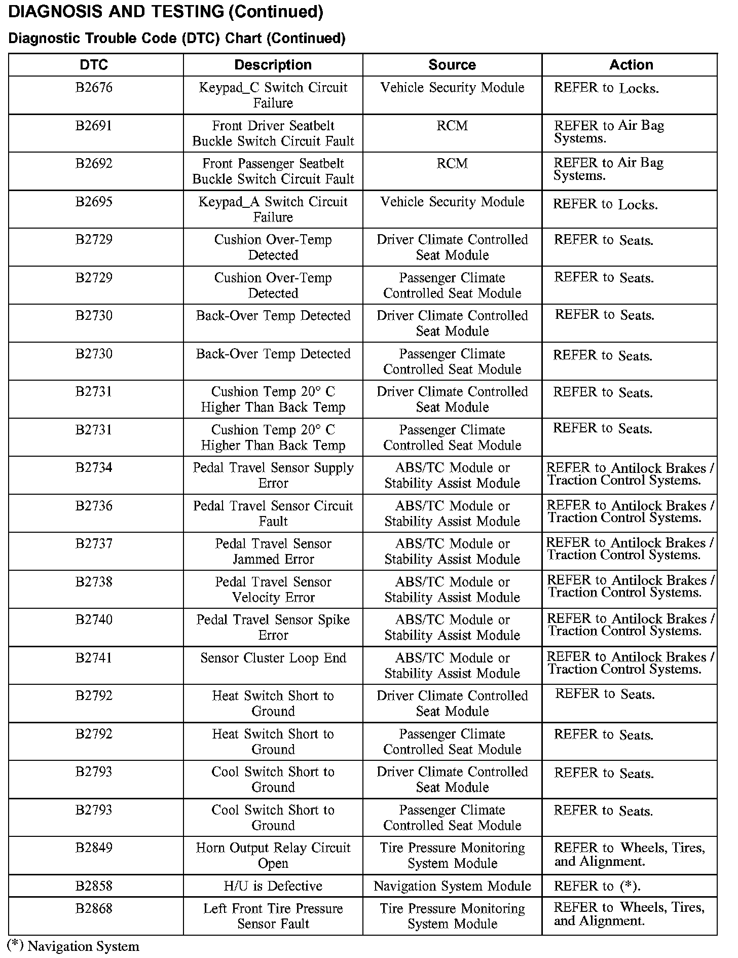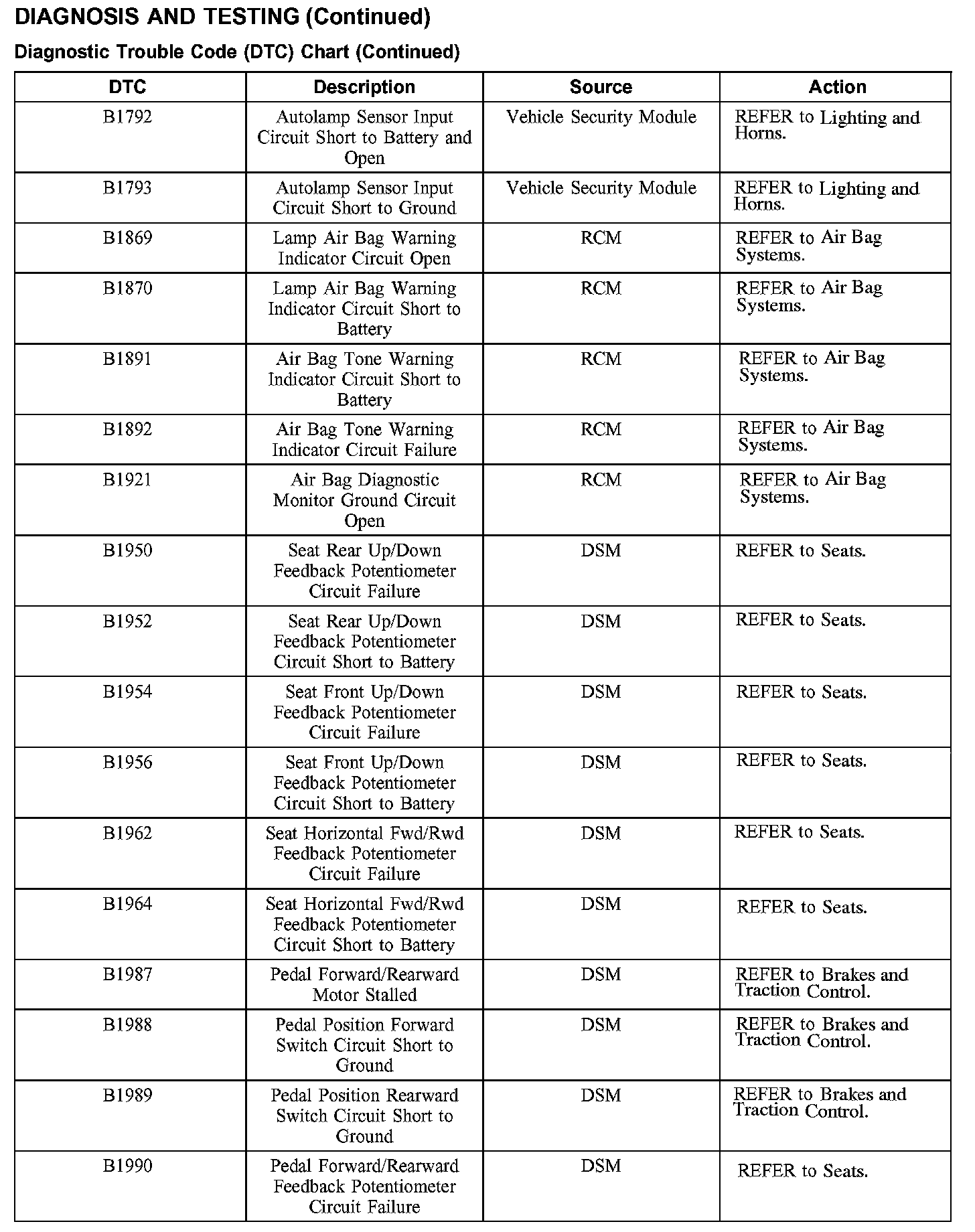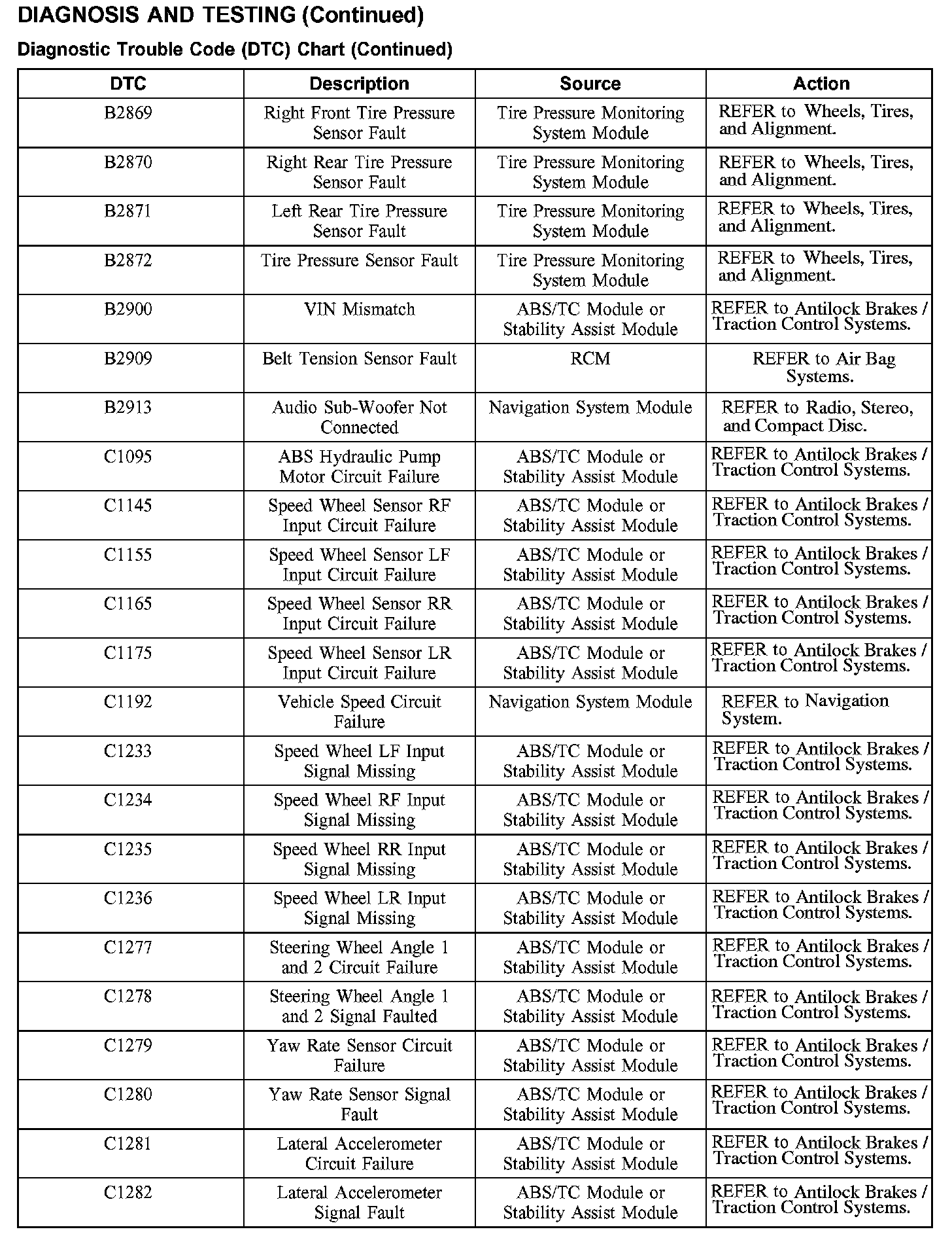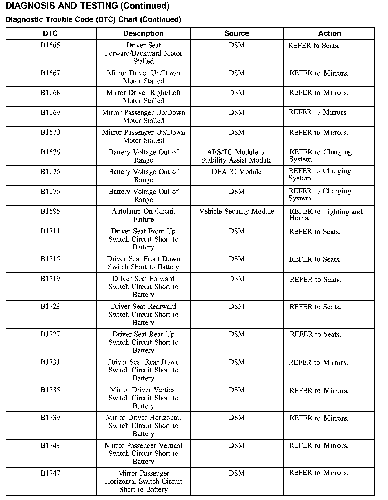 DIAGNOSTIC TROUBLE CODE (DTC) CHART