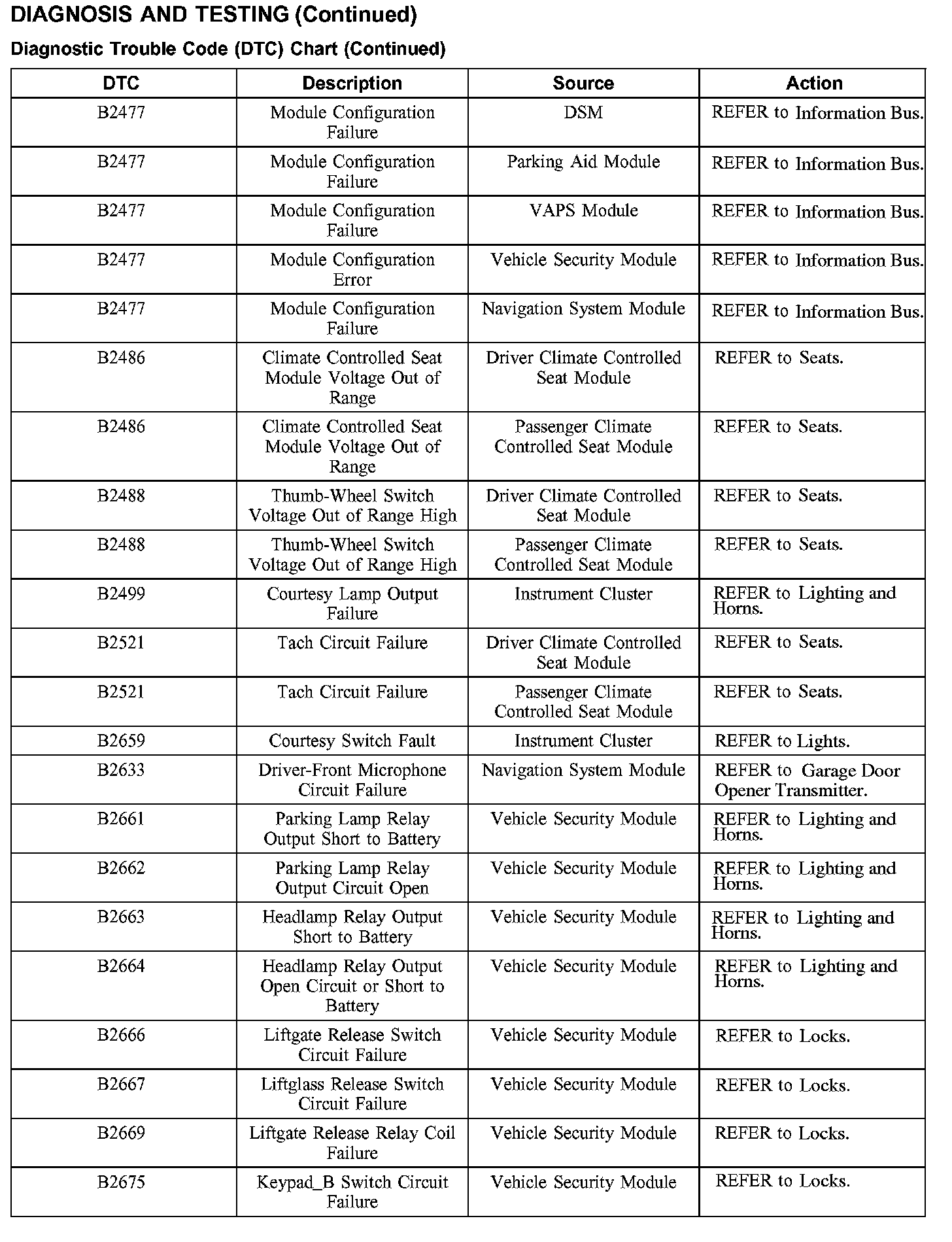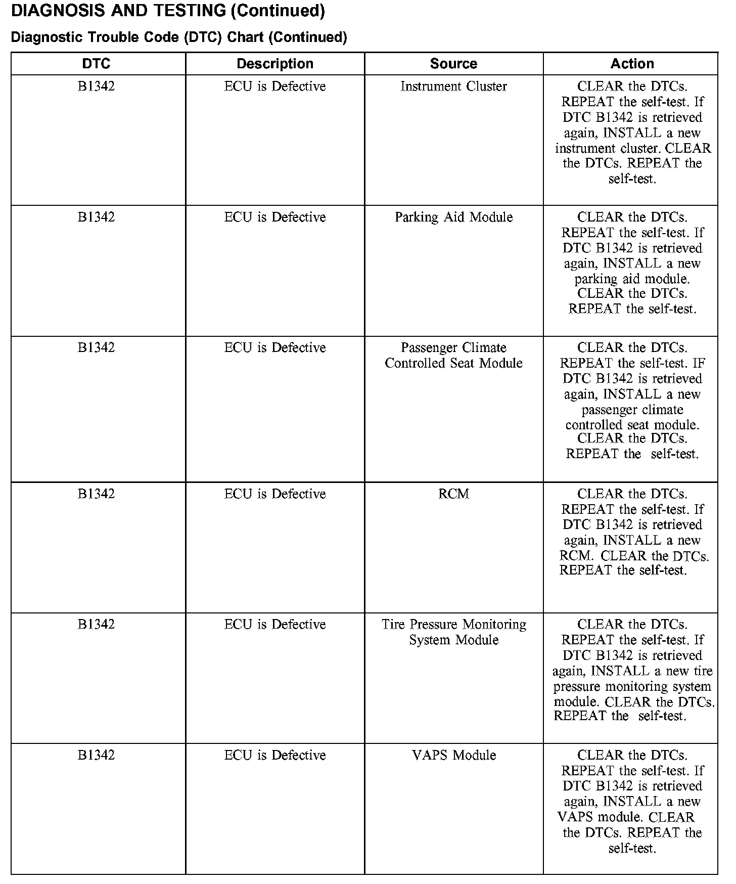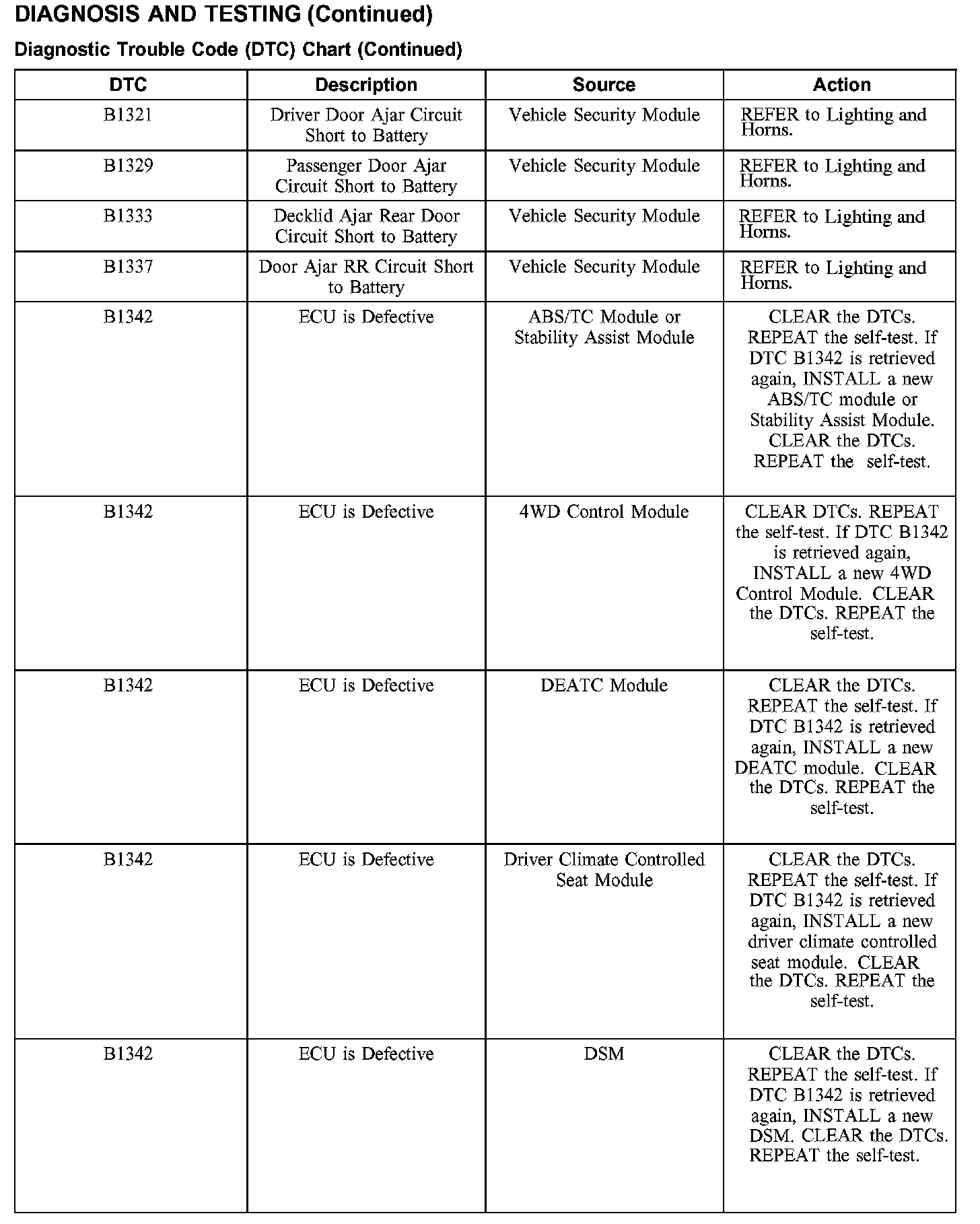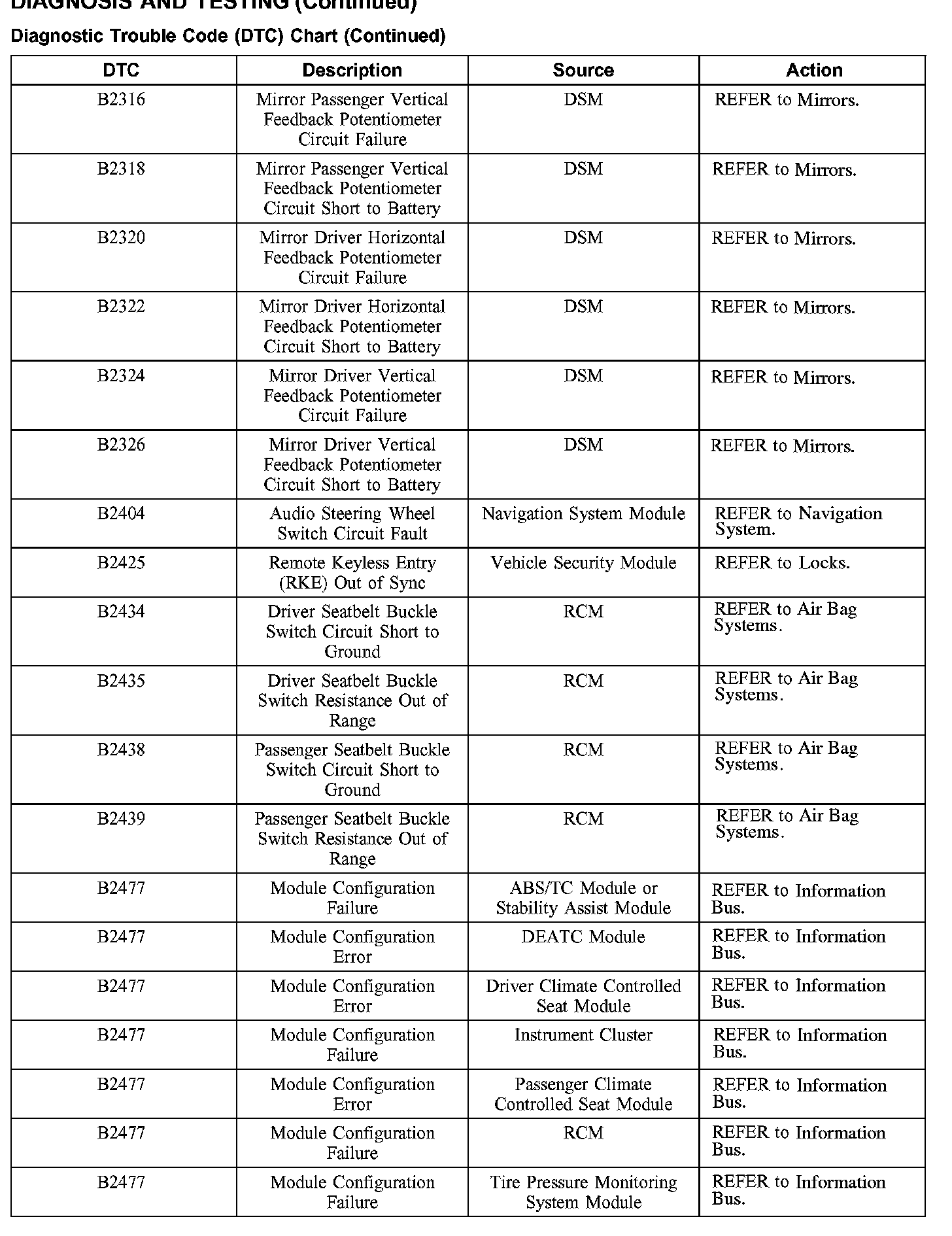 DIAGNOSTIC TROUBLE CODE (DTC) CHART