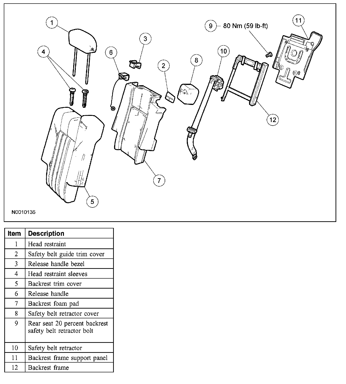 REAR SEAT BACKREST - 20 PERCENT, SECOND ROWDisassembly and Assembly