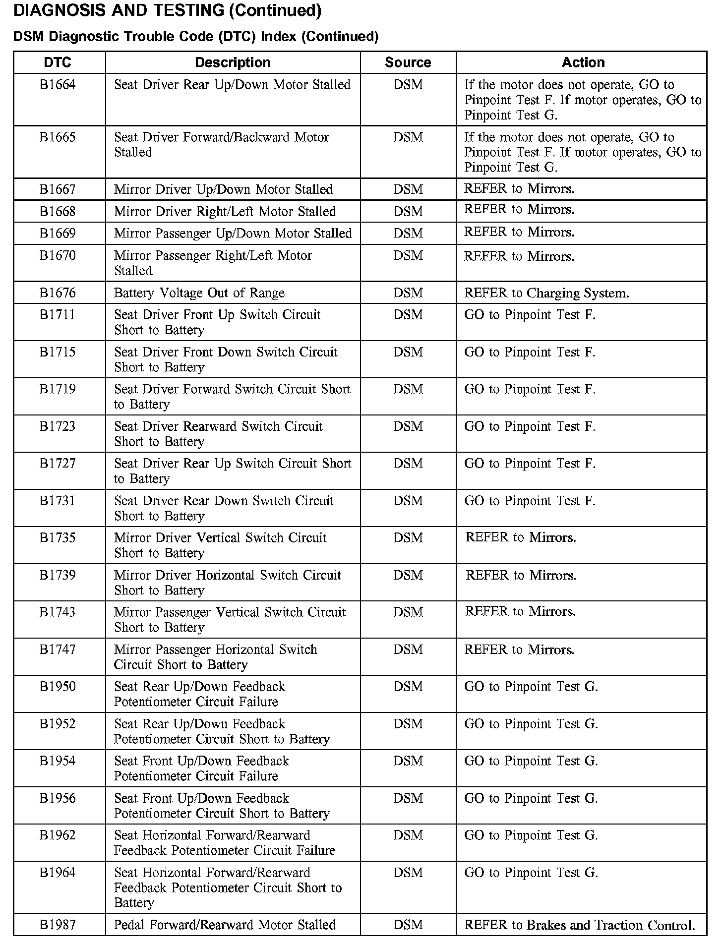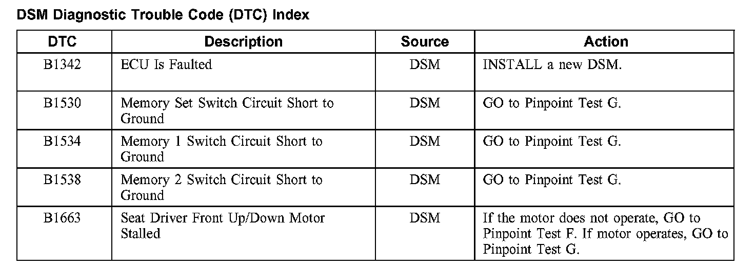 DSM Diagnostic Trouble Code (DTC) Index
